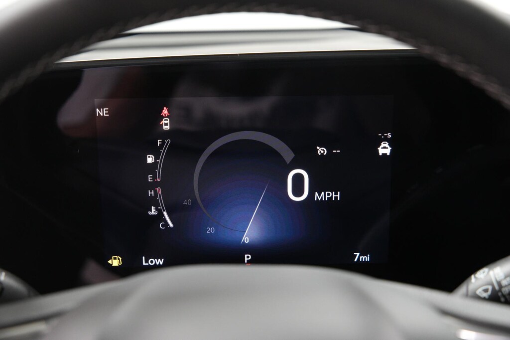 - The vehicle is equipped with a camera that displays an image of the area behind the vehicle on an interior display.