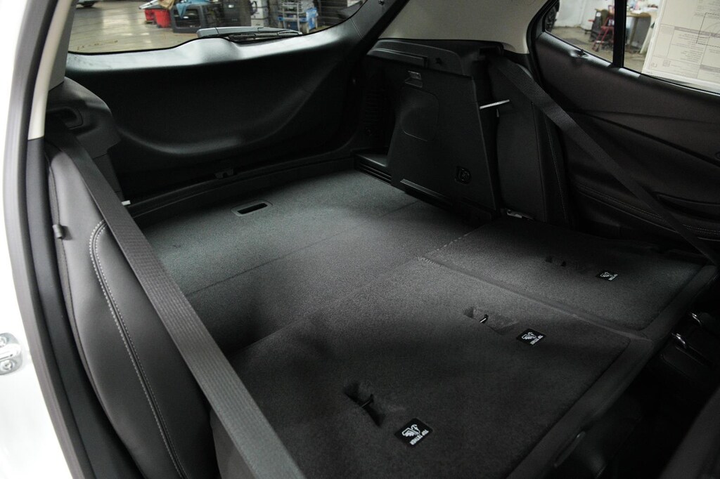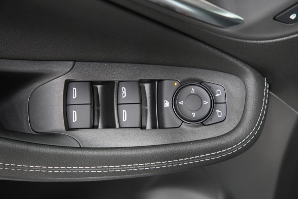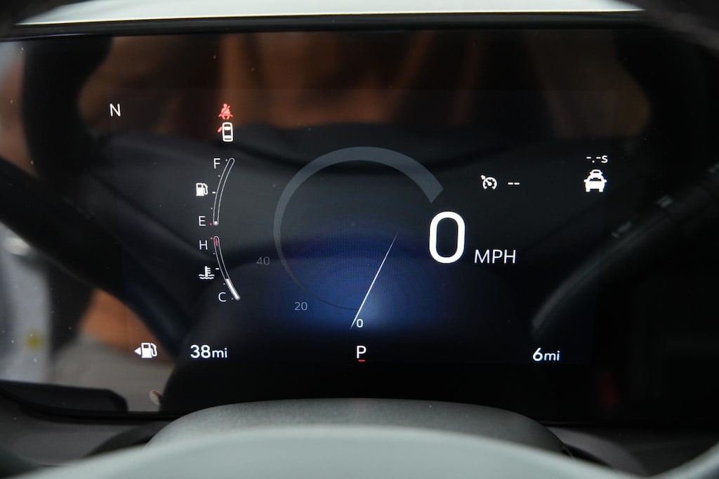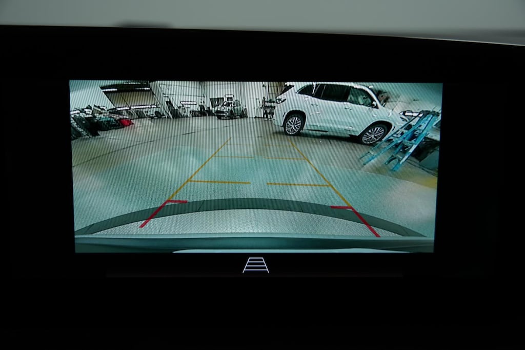 - The vehicle is equipped with a camera that displays an image of the area behind the vehicle on an interior display.