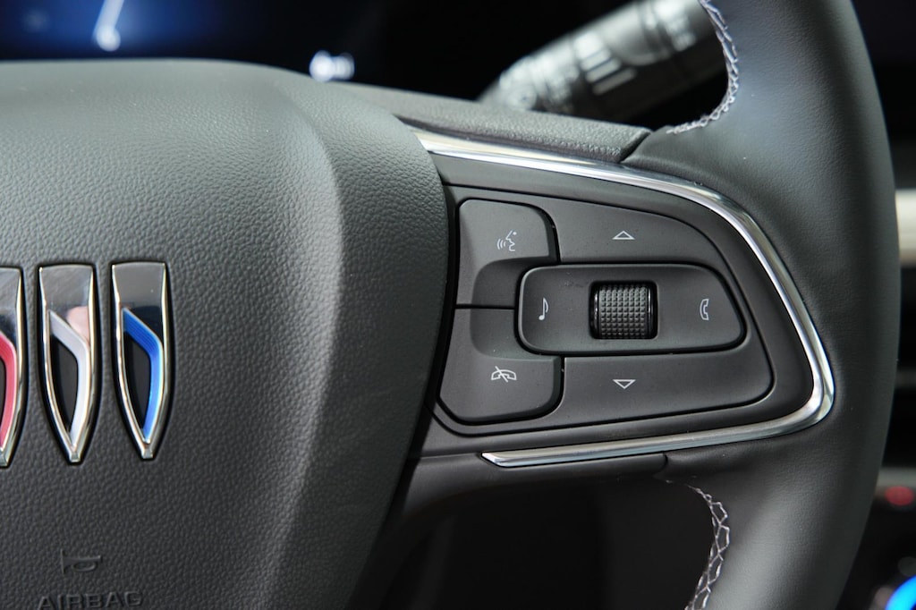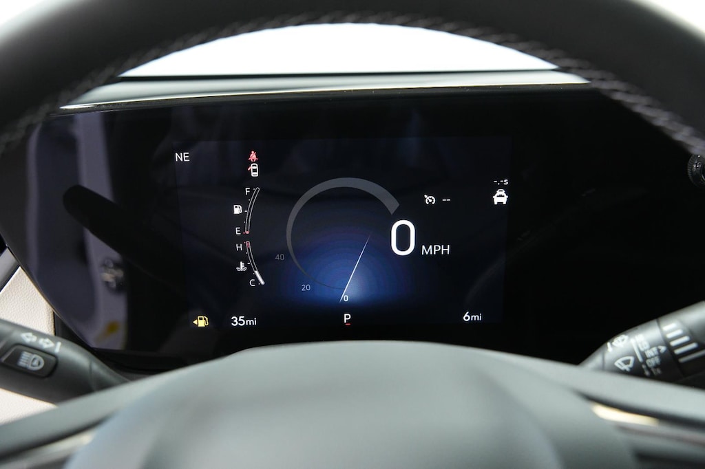 - The vehicle is equipped with a camera that displays an image of the area behind the vehicle on an interior display.