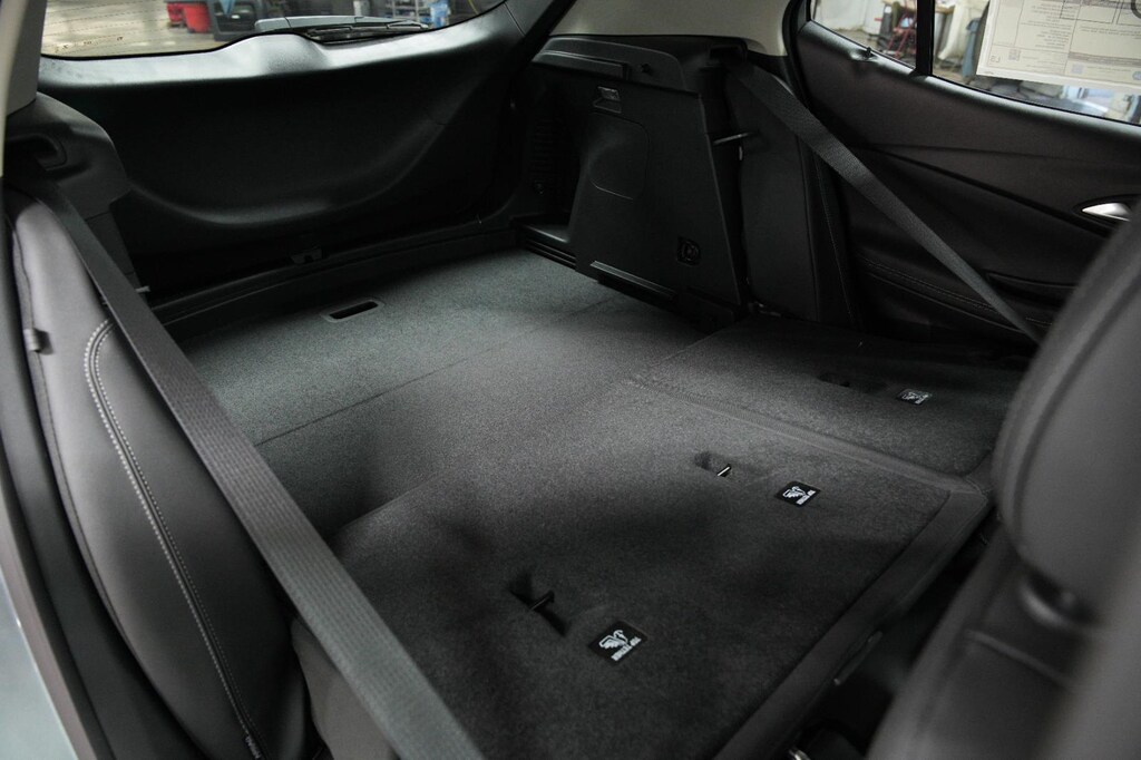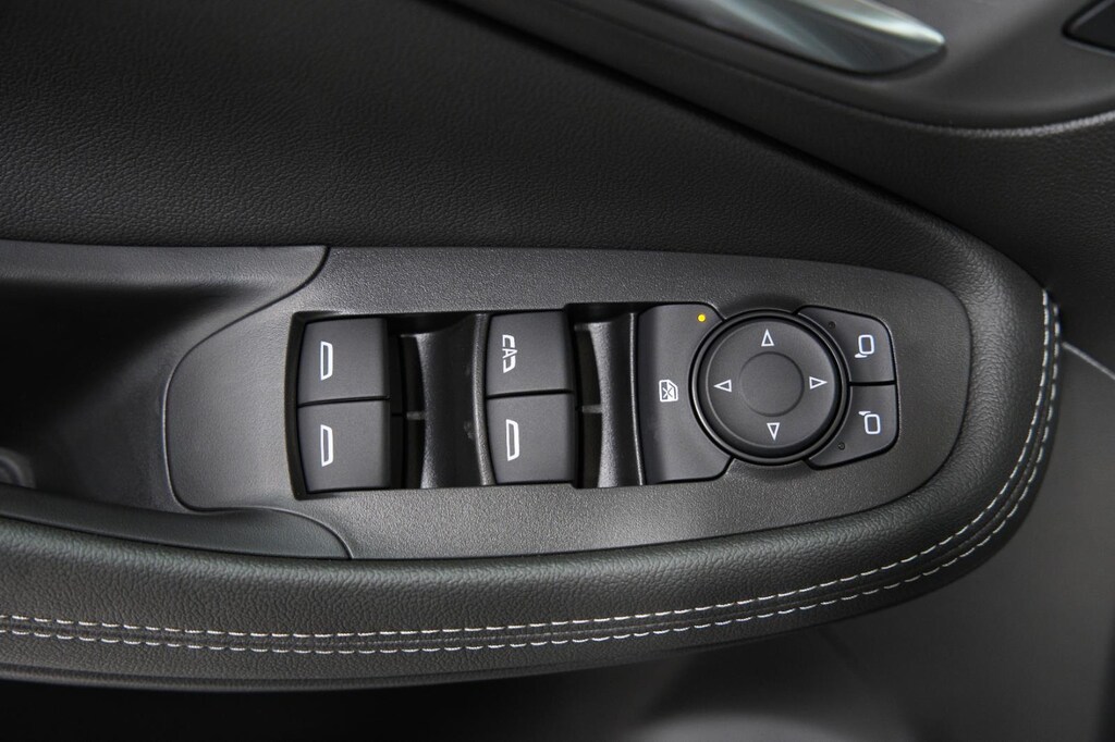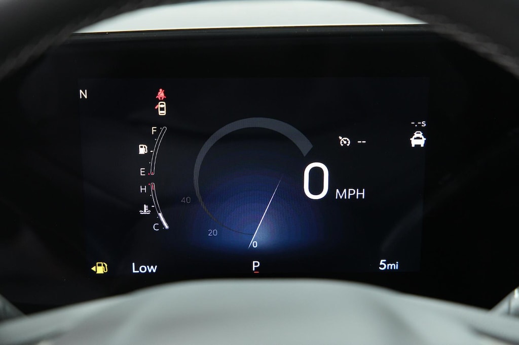 - The vehicle is equipped with a camera that displays an image of the area behind the vehicle on an interior display.