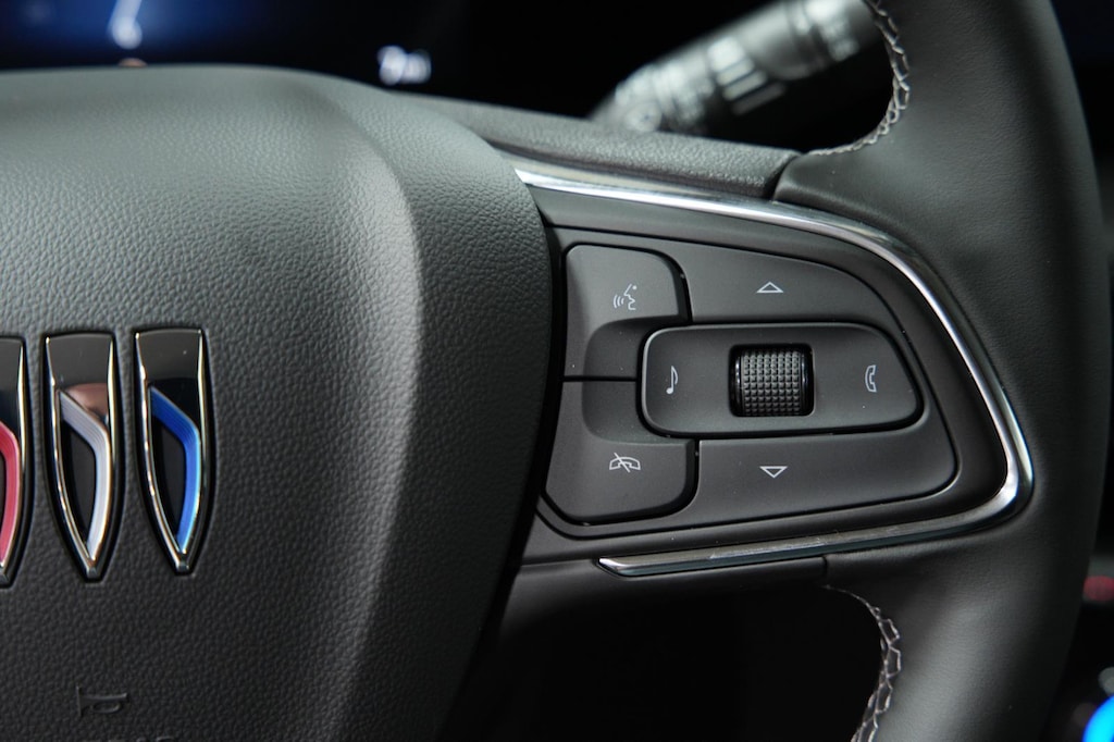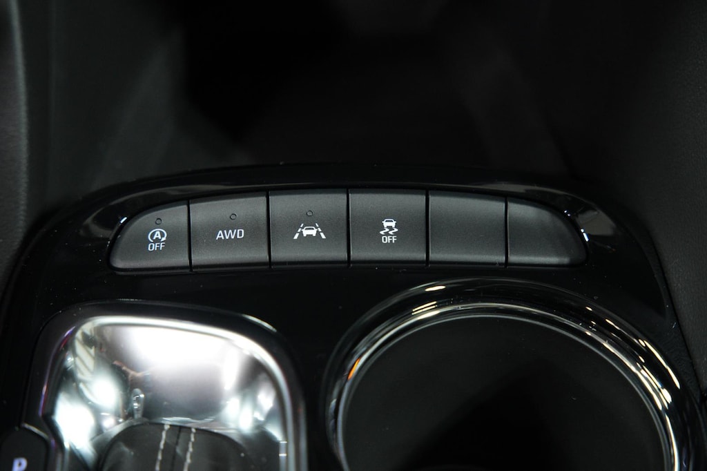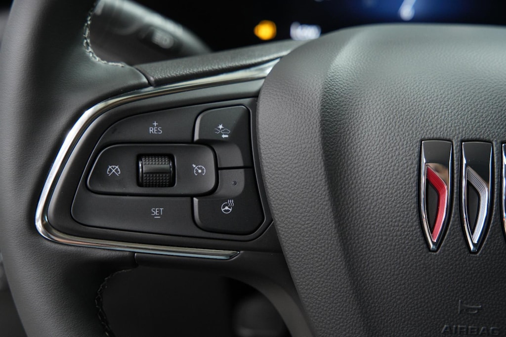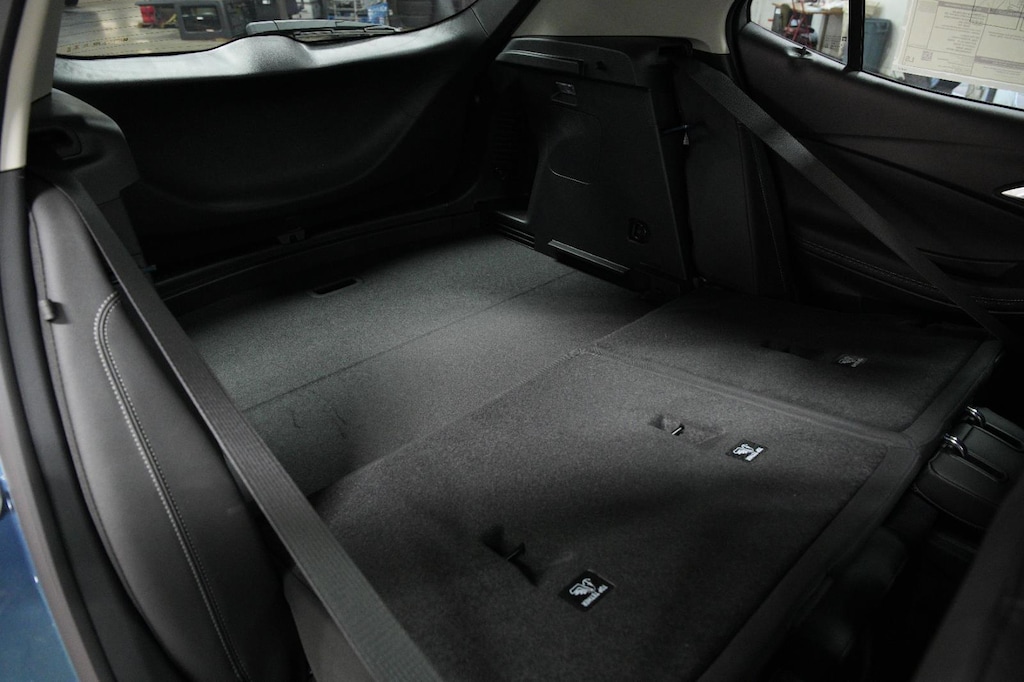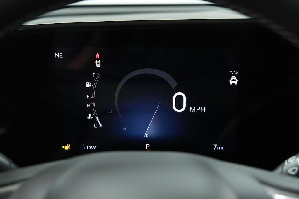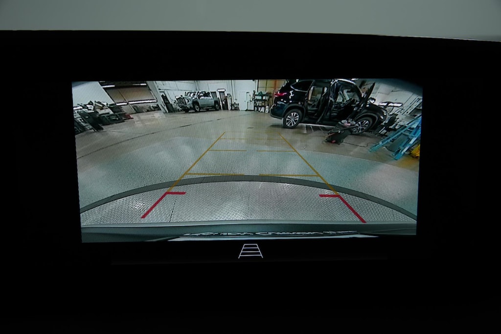 - The vehicle is equipped with a camera that displays an image of the area behind the vehicle on an interior display.