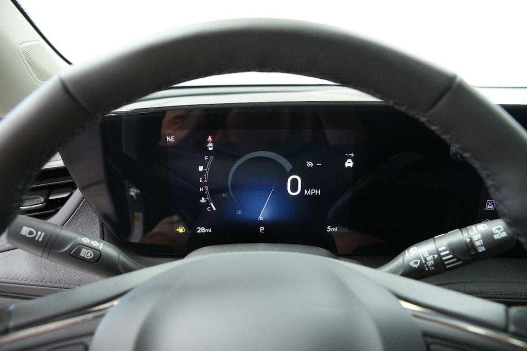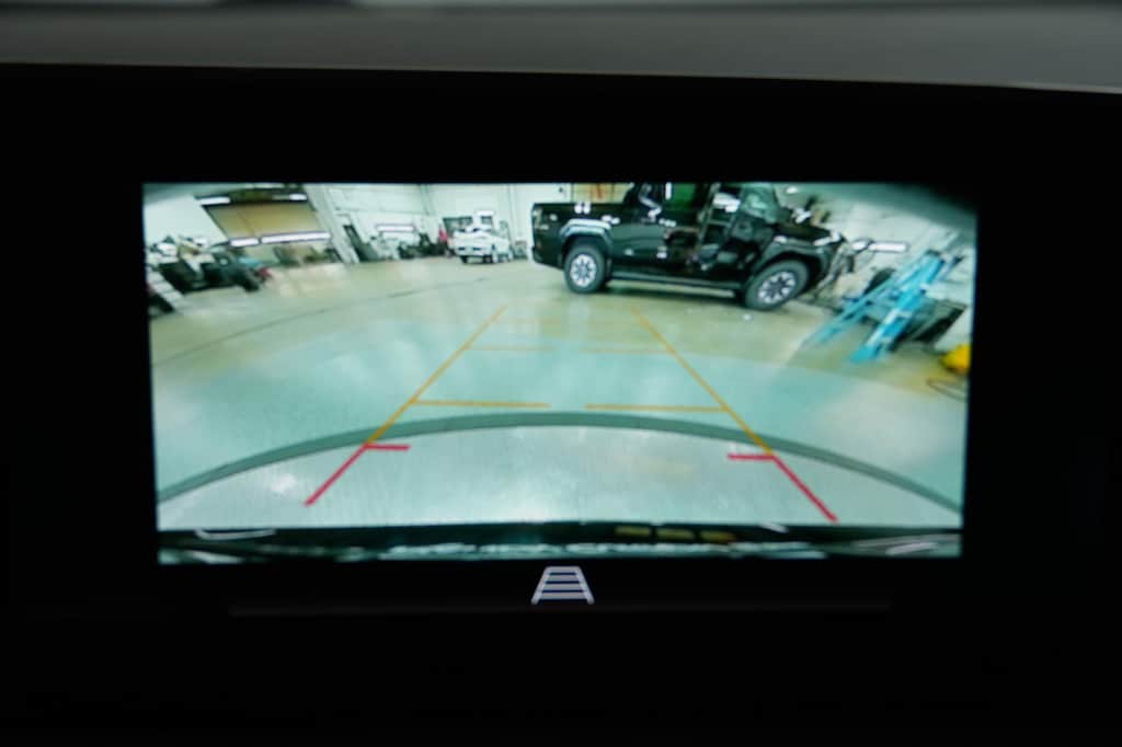 - The vehicle is equipped with a camera that displays an image of the area behind the vehicle on an interior display.