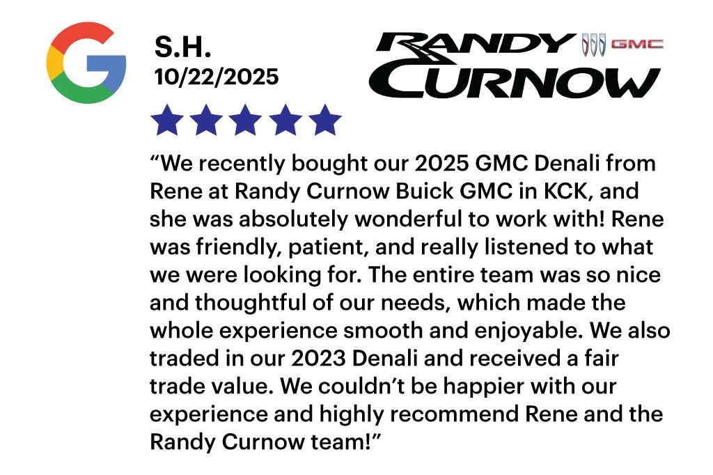 SERVING OUR FRIENDS AND NEIGHBORS IN KANSAS CITY At Randy Curnow Buick GMC, we're more than just a car dealership in Kansas City. We're also members of the greater Olathe, Overland Park, Summit and Leavenworth communities, who work and live here just like you, and we want only what's best for our neighbors. We strive to support community initiatives and events, and we're committed to delivering the best customer service around, from new Buick and GMC sales, to used vehicles, to finance and service. We provide the best of the best to all our customers.