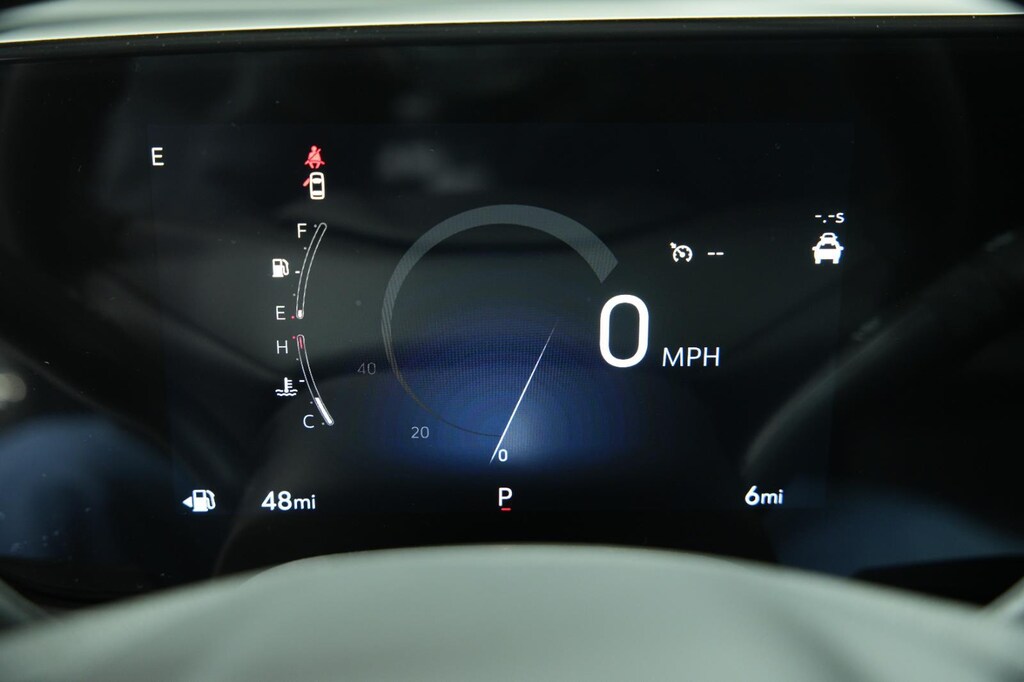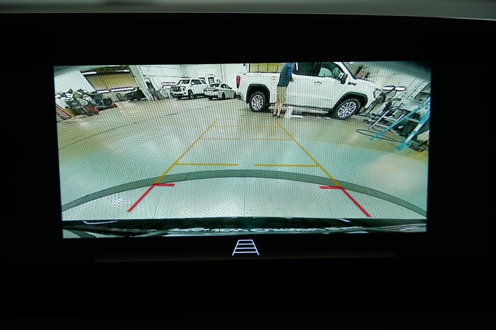 - The vehicle is equipped with a camera that displays an image of the area behind the vehicle on an interior display.