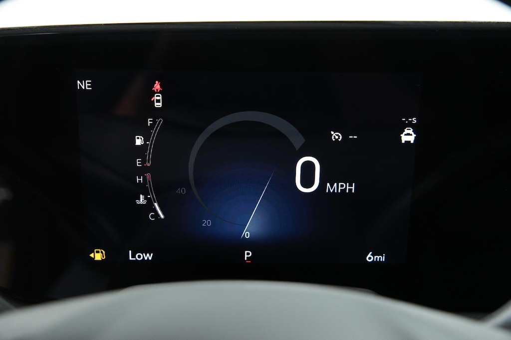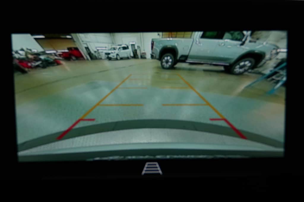 - The vehicle is equipped with a camera that displays an image of the area behind the vehicle on an interior display.