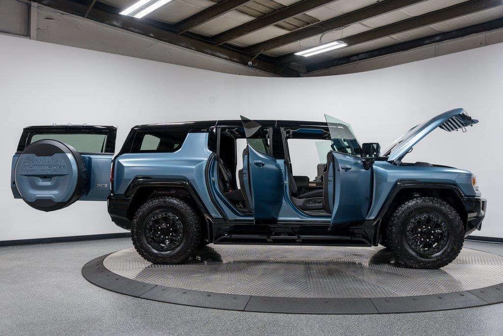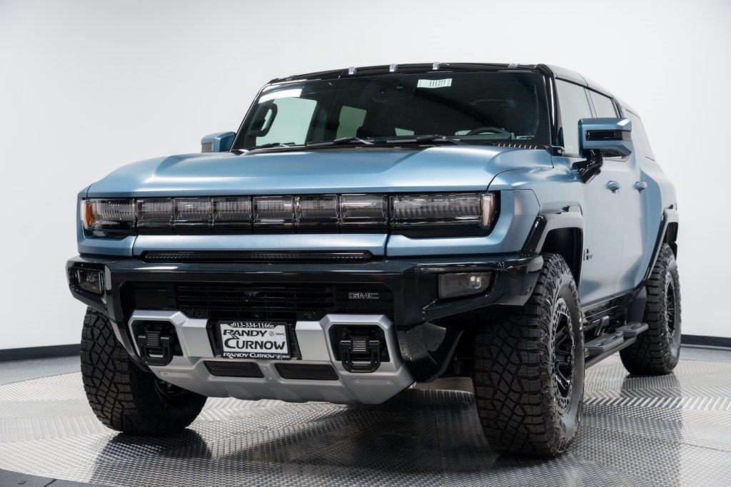 2024 GMC HUMMER EV SUV 3X, has a Neptune Blue Matte exterior with a Lunar Shadow (Jet Black/Taupe) interior. Call us at 913-601-5486 and reference stock Number 111271 for further details.