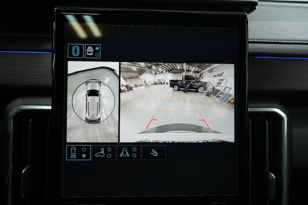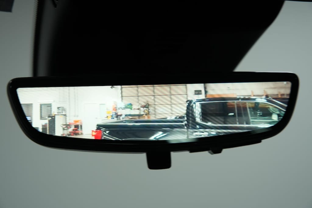 - The vehicle is equipped with a camera that displays an image of the area behind the vehicle on an interior display. The camera is equipped with its own washer.