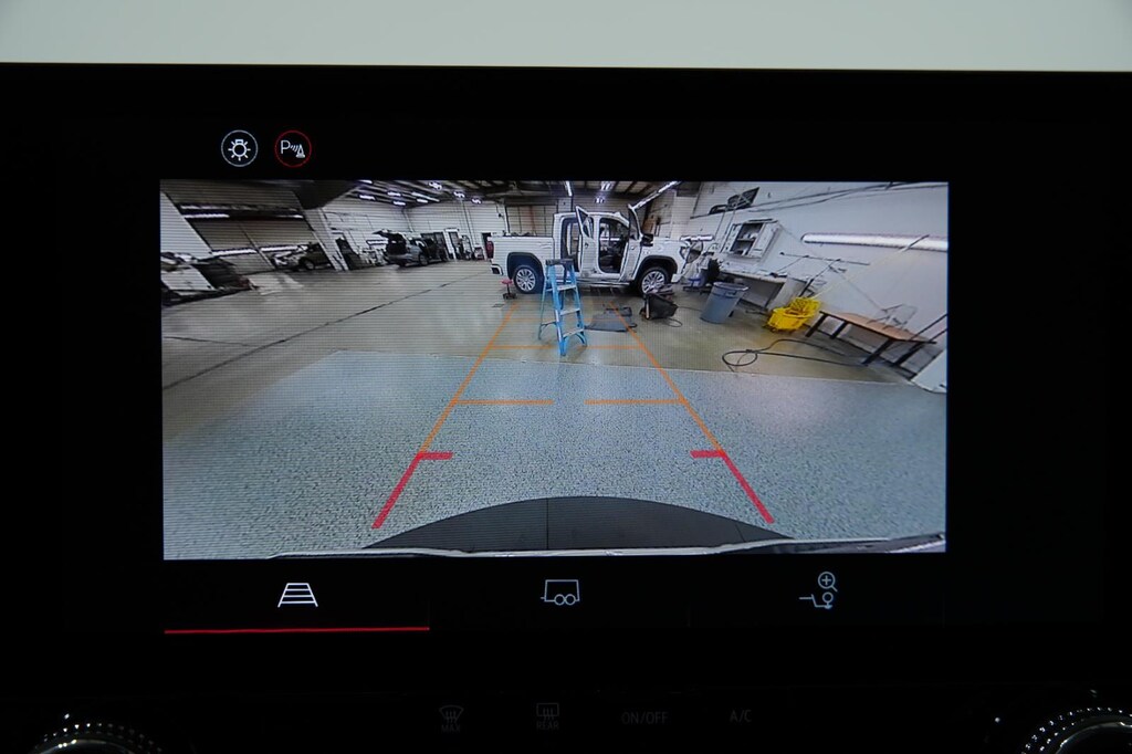 - The vehicle is equipped with a camera that displays an image of the area behind the vehicle on an interior display.