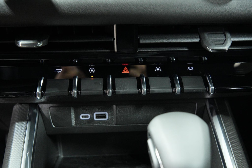 - The vehicle is equipped with a camera that displays an image of the area behind the vehicle on an interior display.