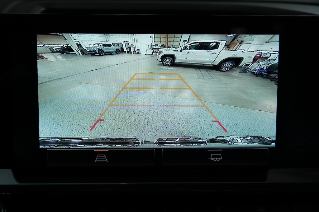 - The vehicle is equipped with a camera that displays an image of the area behind the vehicle on an interior display.