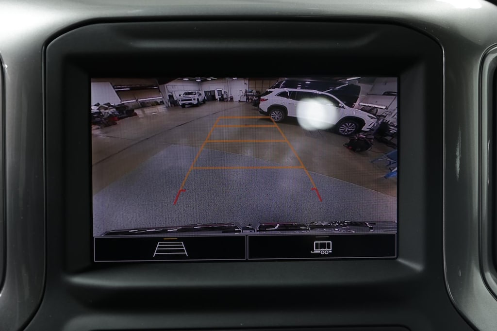 - The vehicle is equipped with a camera that displays an image of the area behind the vehicle on an interior display.