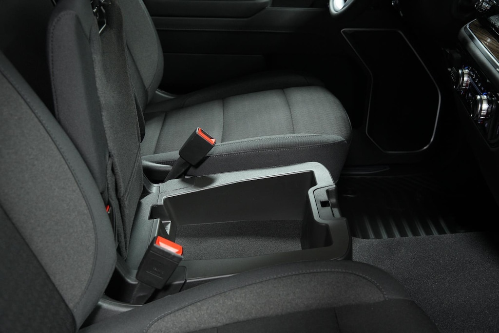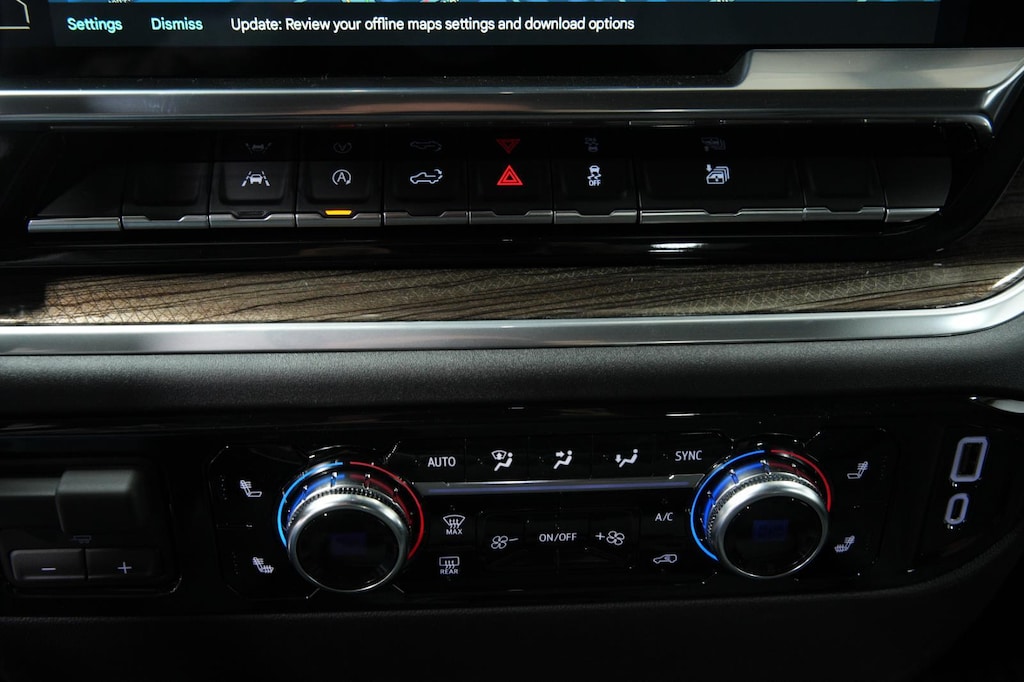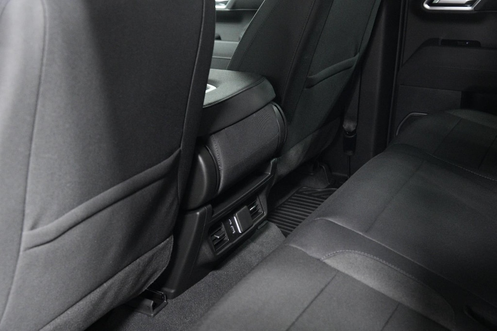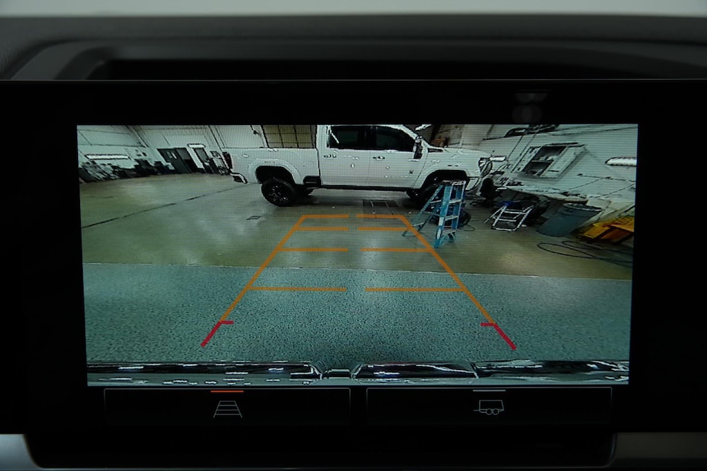 - The vehicle is equipped with a camera that displays an image of the area behind the vehicle on an interior display.