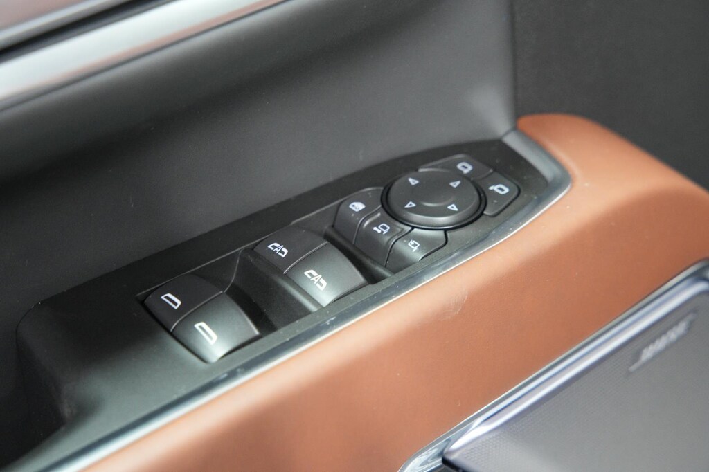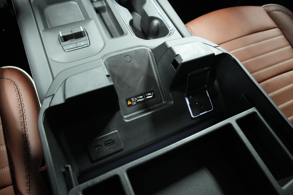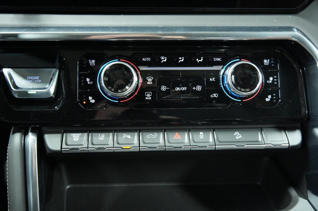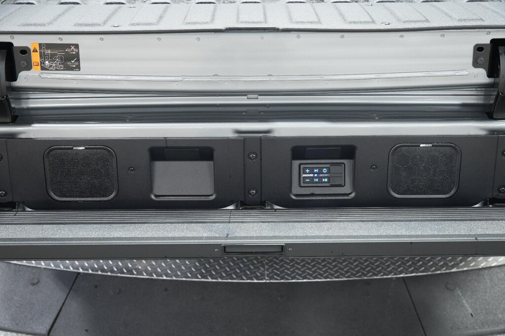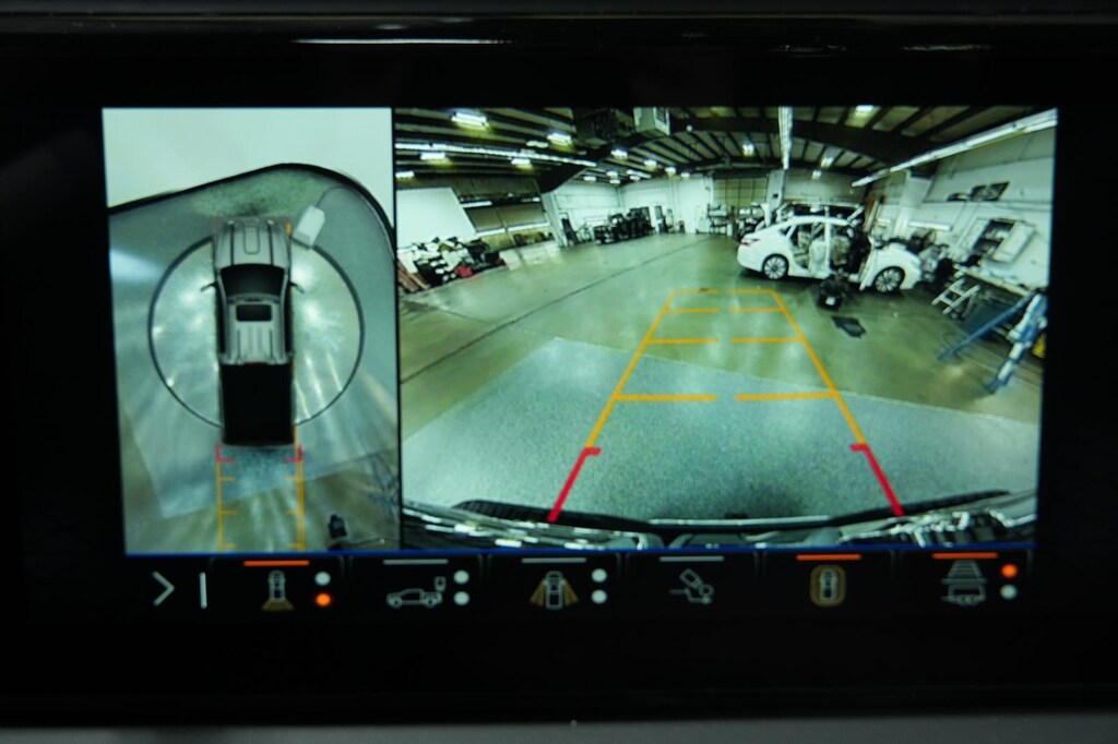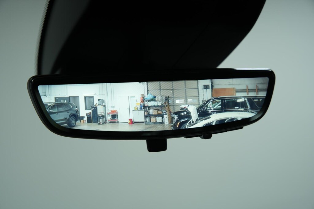 - The vehicle is equipped with a camera that displays an image of the area behind the vehicle on an interior display.
