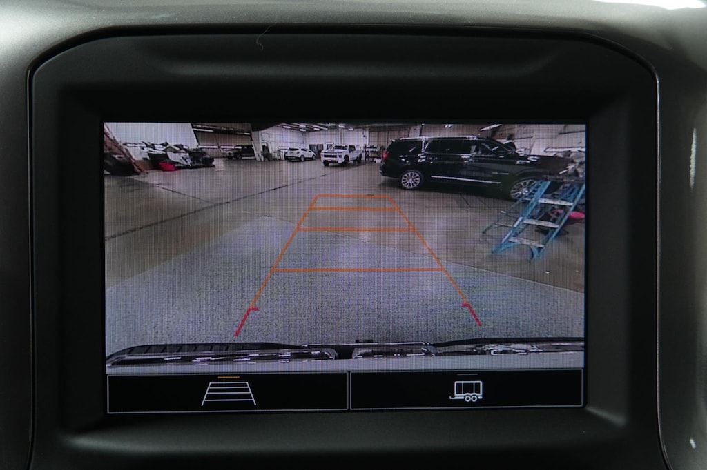 - The vehicle is equipped with a camera that displays an image of the area behind the vehicle on an interior display.