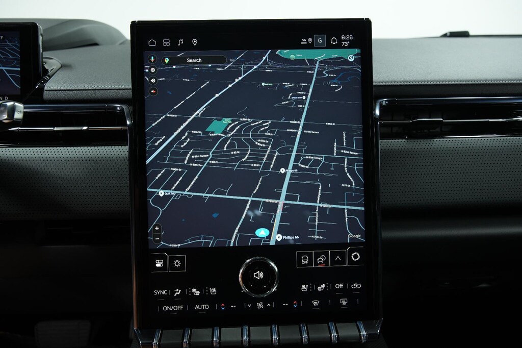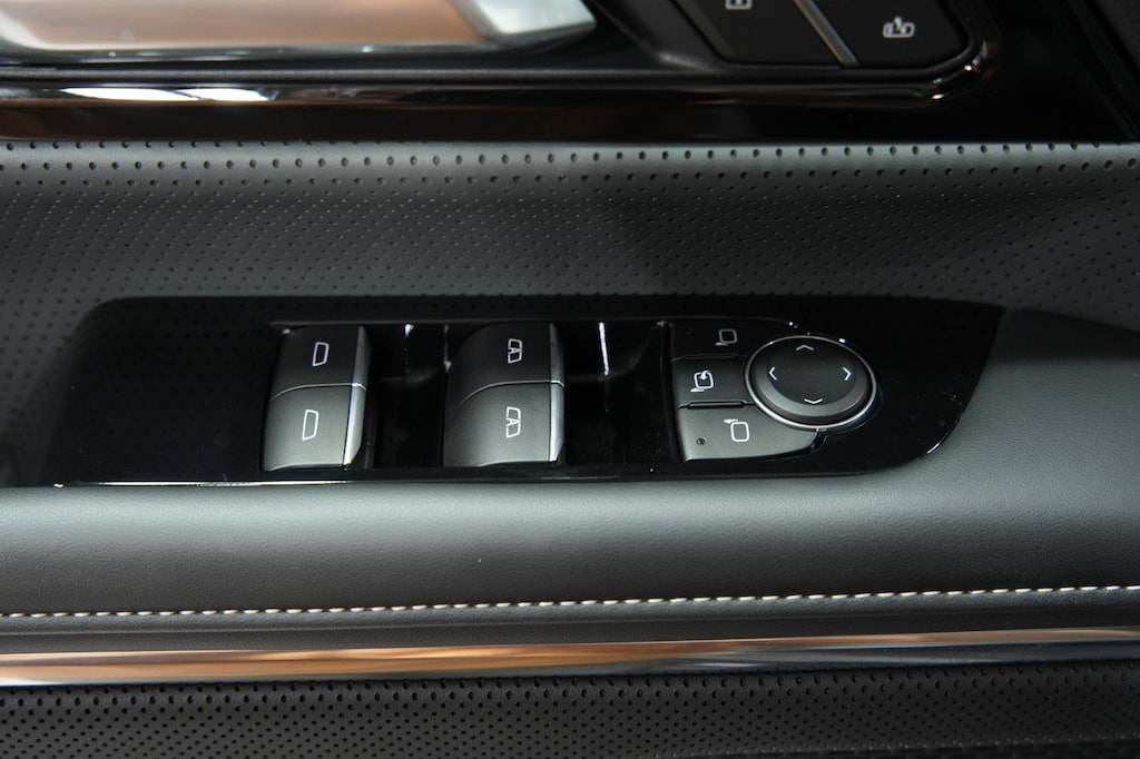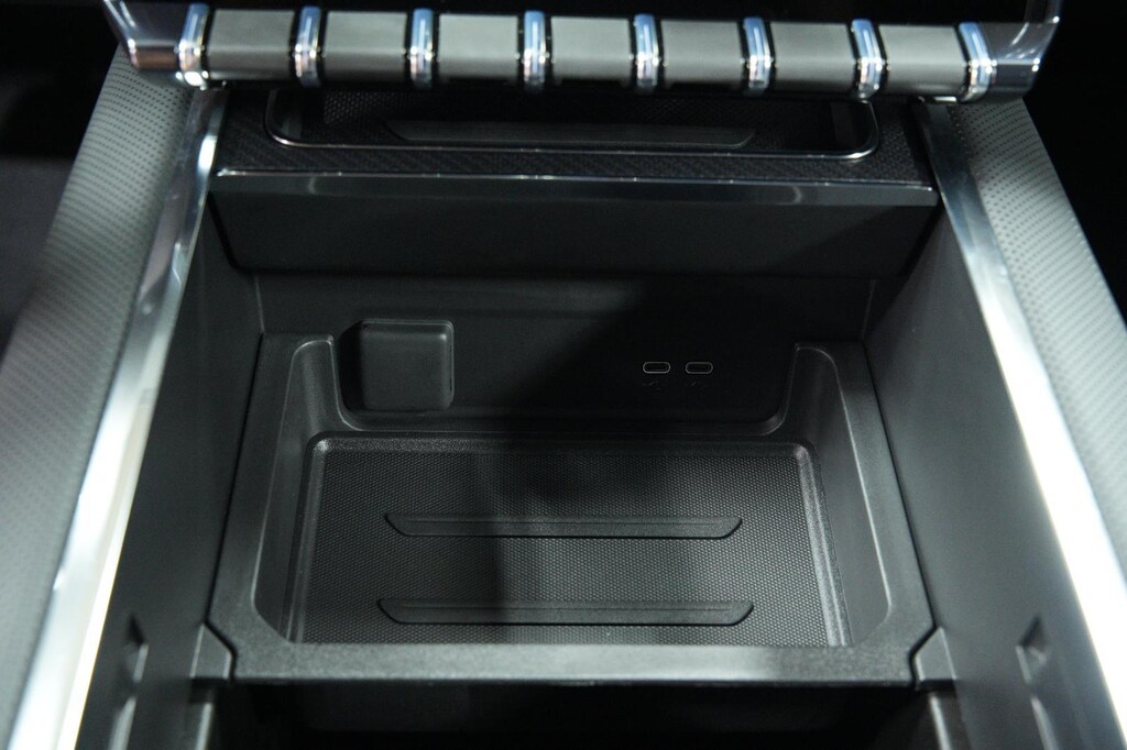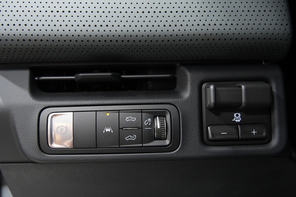 - The vehicle is equipped with a camera that displays an image of the area behind the vehicle on an interior display.