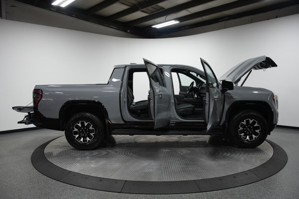 2026 GMC Sierra EV Extended Range AT4, has a Thunderstorm Gray exterior with a Forest Storm interior. Call us at 913-601-5486 and reference stock Number FNBWK2 for further details.