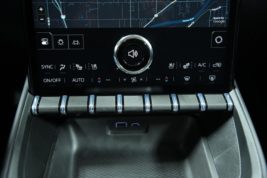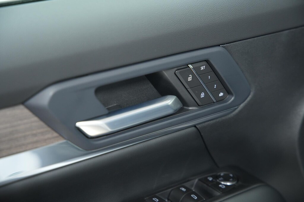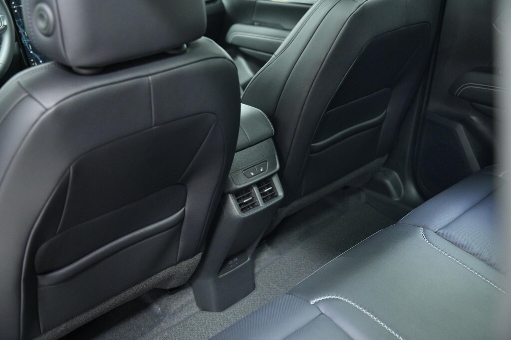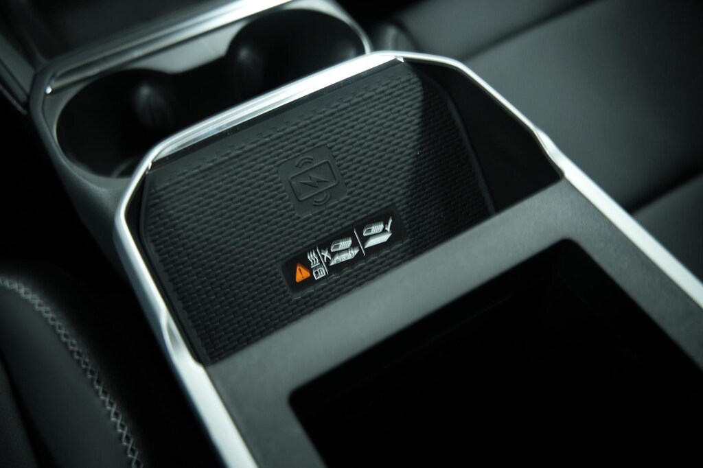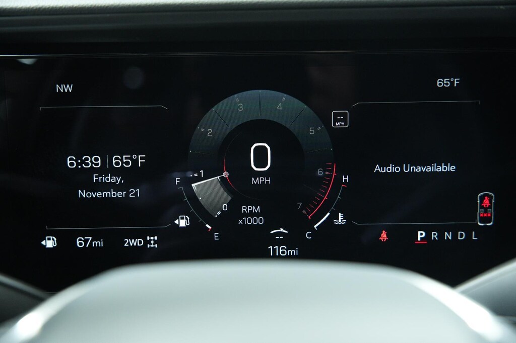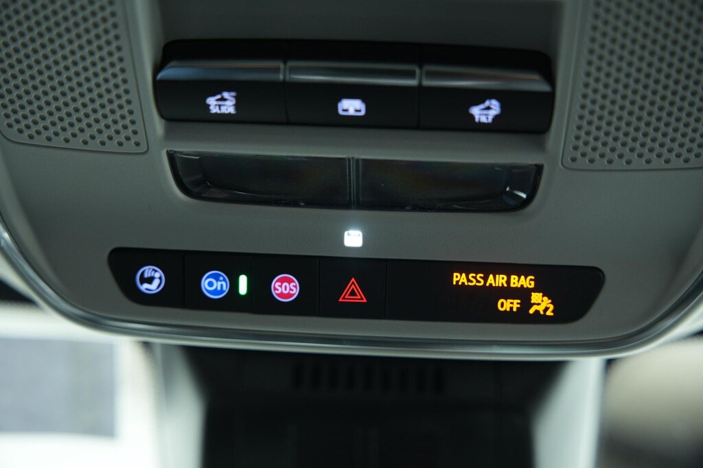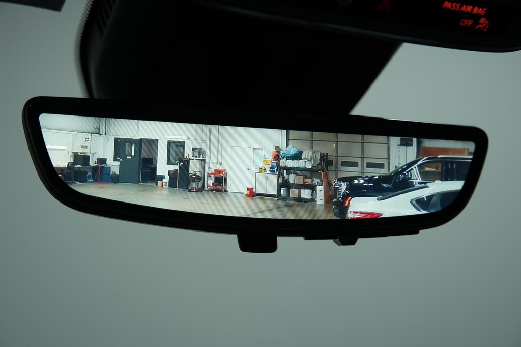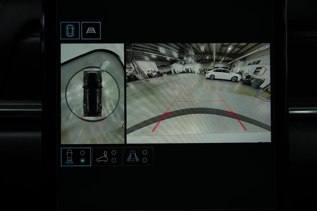 - The vehicle is equipped with a camera that displays an image of the area behind the vehicle on an interior display.