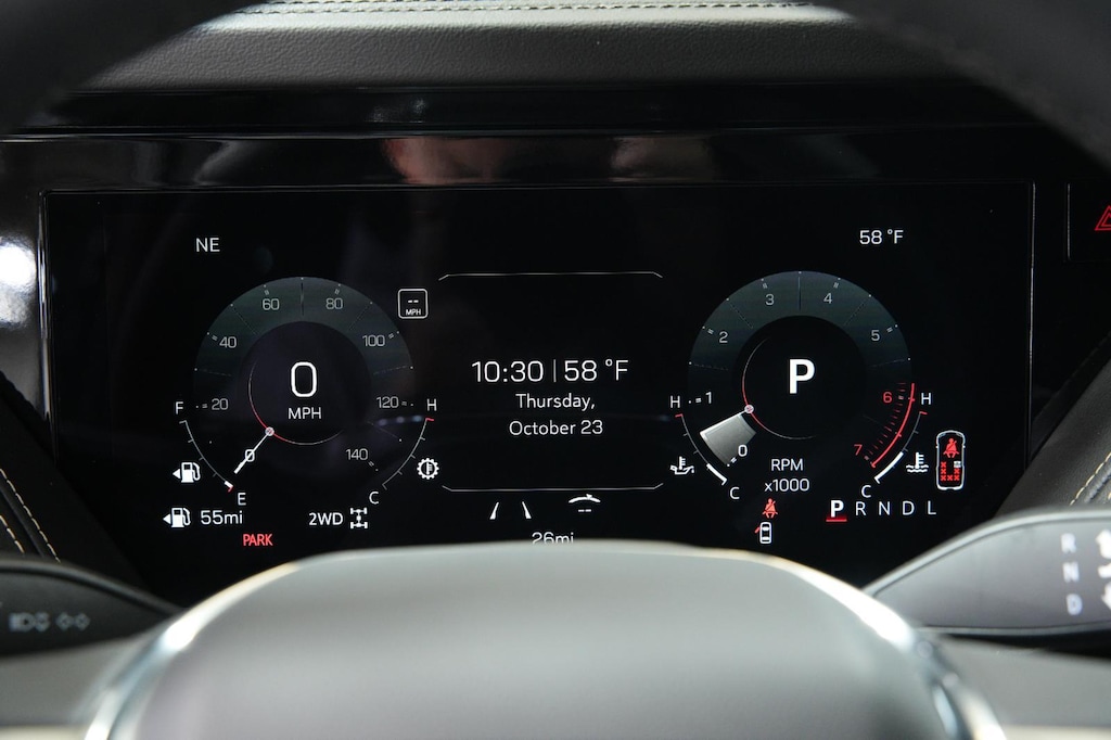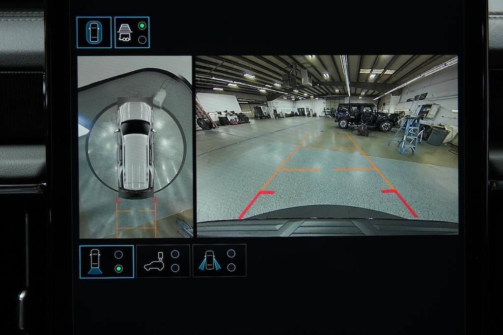 - The vehicle is equipped with a camera that displays an image of the area behind the vehicle on an interior display. The camera is equipped with its own washer.