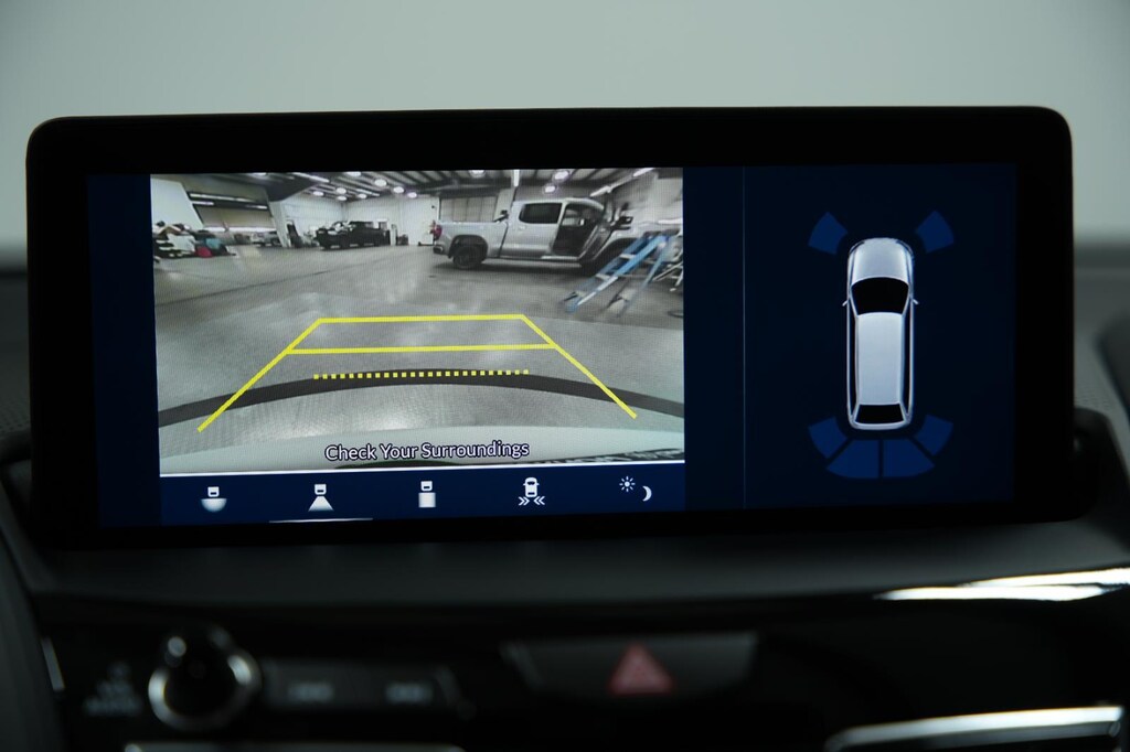 - The vehicle is equipped with a camera that displays an image of the area behind the vehicle on an interior display. The camera is equipped with its own washer.