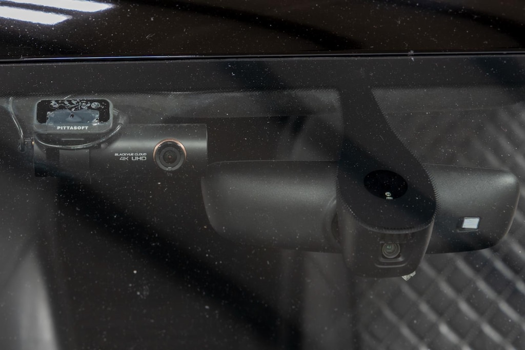 - The vehicle is equipped with a camera that displays an image of the area behind the vehicle on an interior display.