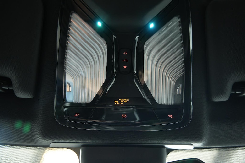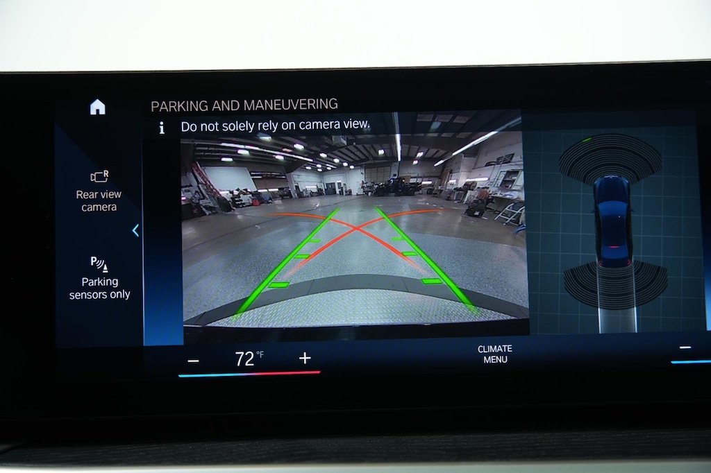 - The vehicle is equipped with a camera that displays an image of the area behind the vehicle on an interior display.