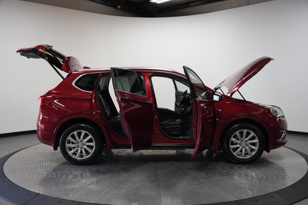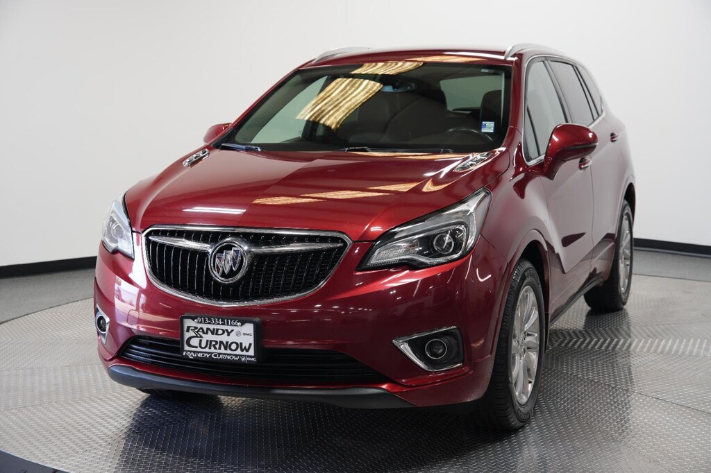 2019 Buick Envision Essence, has a Chili Red Metallic exterior with a Ebony interior. Call us at 913-601-5486 and reference stock Number 111675A for further details.