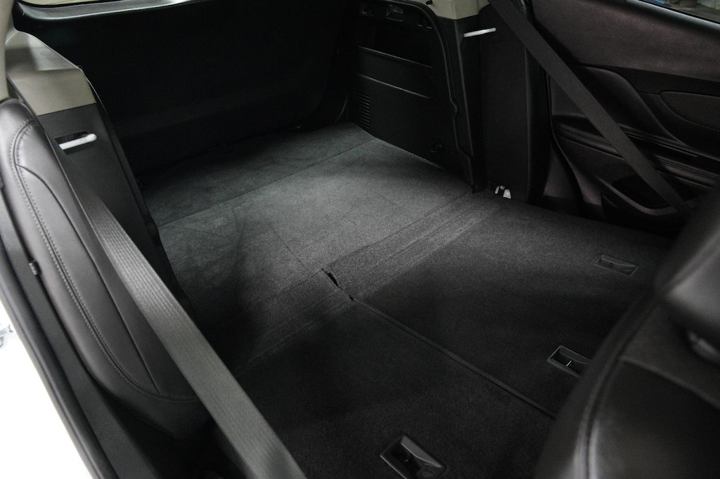 - The vehicle is equipped with a camera that displays an image of the area behind the vehicle on an interior display.