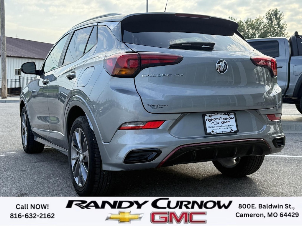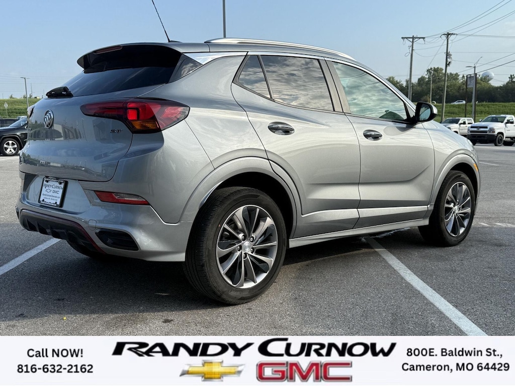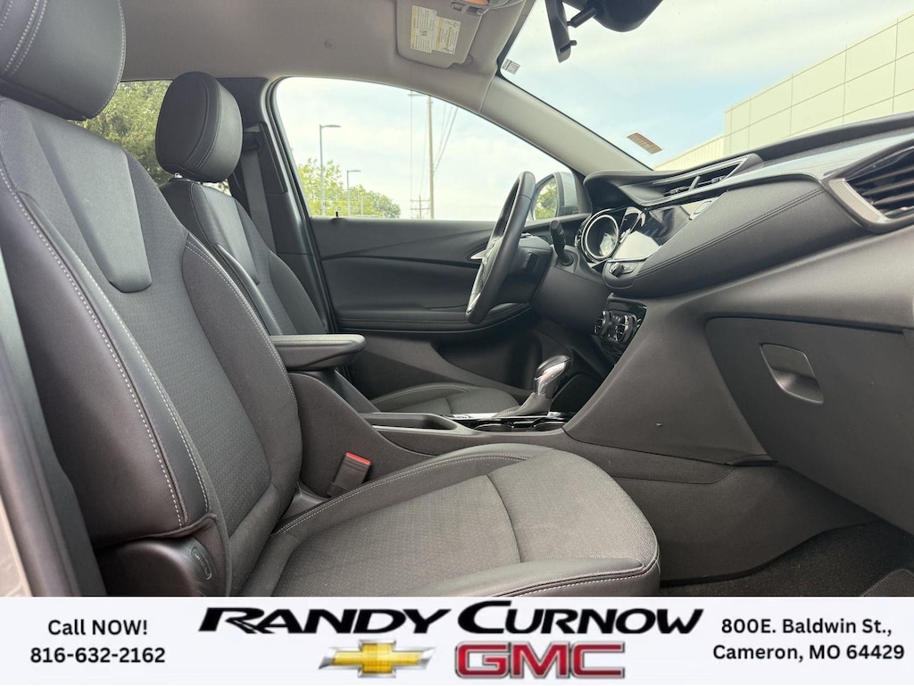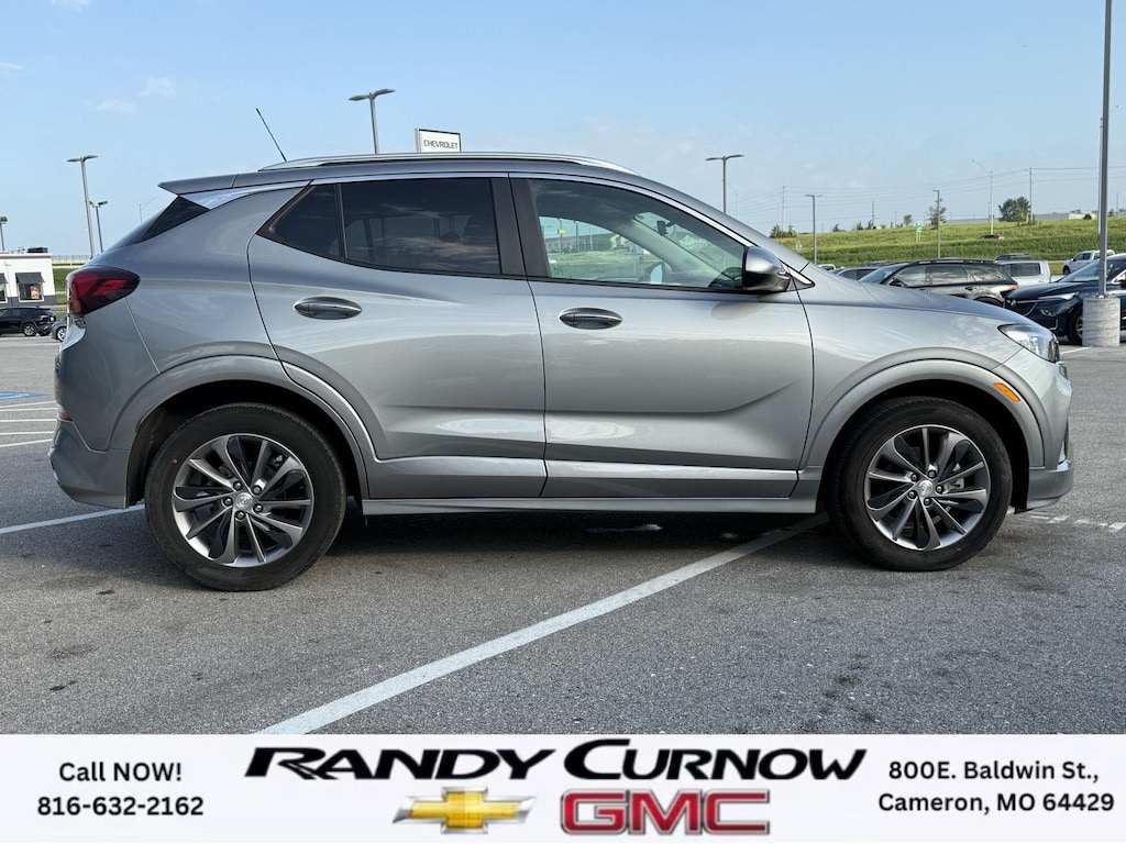 This 2023 Buick Encore GX Select, has a Moonstone Gray Metallic exterior with a Ebony with Ebony interior accents interior. Call us at 816-632-2162 and reference stock Number 7690A for further details. No Accidents! One Owner! IMPORTANT PACKAGE INFORMATION: Sport Touring Package ($695 value)Body Color Rocker MoldingsBody-Color Bodyside MoldingsSport Touring BadgeCustom Grille with Red Accents18" Aluminum Wheels with Dark Android High Gloss InsertsRed Front and Rear Bumper Protective MoldingSport Front Bumper with Red AccentsSport Rear Bumper with Red AccentsSafety Package II ($200 value)Rear Cross Traffic AlertLane Change Alert with Side Blind Zone AlertPreferred Equipment Group 1SDHeated Driver and Front Passenger SeatsHands-Free Power Liftgate Package ($595 value)Hands Free Power Liftgate Safety and Security The vehicle is equipped with a system that senses, and then prepares, the vehicle and/or occupants, for an impending forward collision. The vehicle constantly monitors the roadway in front of the vehicle and identifies and tracks pedestrians on an interior display. If the system determines a likely impact, it will automatically take preventative steps to avoid hitting the pedestrian. The vehicle is equipped with a camera that displays an image of the area behind the vehicle on an interior display.Technology and Telematics Wireless Apple CarPlay/Wireless Android Auto smart device wireless mirroring Mobile devices can wirelessly connect to the internet through the vehicle's private mobile network. OTHER NOTABLE FEATURES AND OPTIONS YOU SHOULD KNOW ABOUT: ENGINE, ECOTEC 1.3L TURBO, TRANSMISSION, CONTINUOUSLY VARIABLE (CVT), SPORT TOURING PACKAGE, HANDS-FREE POWER LIFTGATE PACKAGE, LIFTGATE, POWER, HANDS FREE, AUX HEATER, ELECTRIC, HEATING/DEFROSTER, LANE CHANGE ALERT WITH SIDE BLIND ZONE ALERT, REAR CROSS TRAFFIC ALERT Keyless start, push button, Engine air filtration monitor, Coolant protection, engine, Front-wheel drive, Glass, deep-tinted, Seats, heated driver and front passenger (Beginning with start of production, vehicles will be forced to include (00V) Not Equipped with Heated Driver and Front Passenger Seats, which removes heated driver and front passenger seats. See dealer for details or the window label for the features on a specific vehicle.), USB charging ports, 2 (1 USB Type-A, 1 USB Type-C), charging only, HVAC duct, underneath rear right-passenger seat, Teen Driver a configurable feature that lets you activate customizable vehicle settings associated with a key fob, to help encourage safe driving behavior. It can limit certain available vehicle features, and it prevents certain safety systems from being turned off. An in-vehicle report card gives you information on driving habits and helps you to continue to coach your new driver SERVING OUR FRIENDS AND NEIGHBORS IN CAMERON AND THE SURROUNDING AREA! At Randy Curnow Chevrolet GMC, we strive everyday to provide a car-buying and -servicing experience that's truly unparalleled. We offer incredibly low prices on our Chevrolet, GMC models for sale, while also giving back to the community that supports us. Plus, we're the home of the free lifetime warranty! Hurry down to our Chevy dealership in Cameron, MO, now to see what we have in store for you. No matter if you're shopping for a new Chevy truck, GMC SUV or Buick luxury car, you'll find what you're looking for on our lot. Our nearby MO GMC dealership offers truly massive new, used and Certified Pre-Owned car inventories for you to browse. What's more, if you want to save on the new Buick SUV or Chevrolet model that you have your eye on, make sure to check out our new GMC lease specials and finance offers. We're always updating our Buick lease and Chevy financing incentives to include all your favorite vehicles, so stop by Randy Curnow Chevrolet GMC today! FINANCING OPTIONS: Take advantage of our attractive low-rate financing options. Our access to various Credit Unions and National Banks can provide financing for