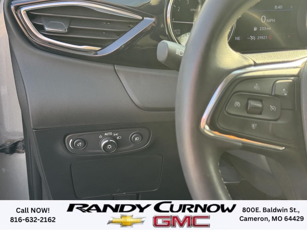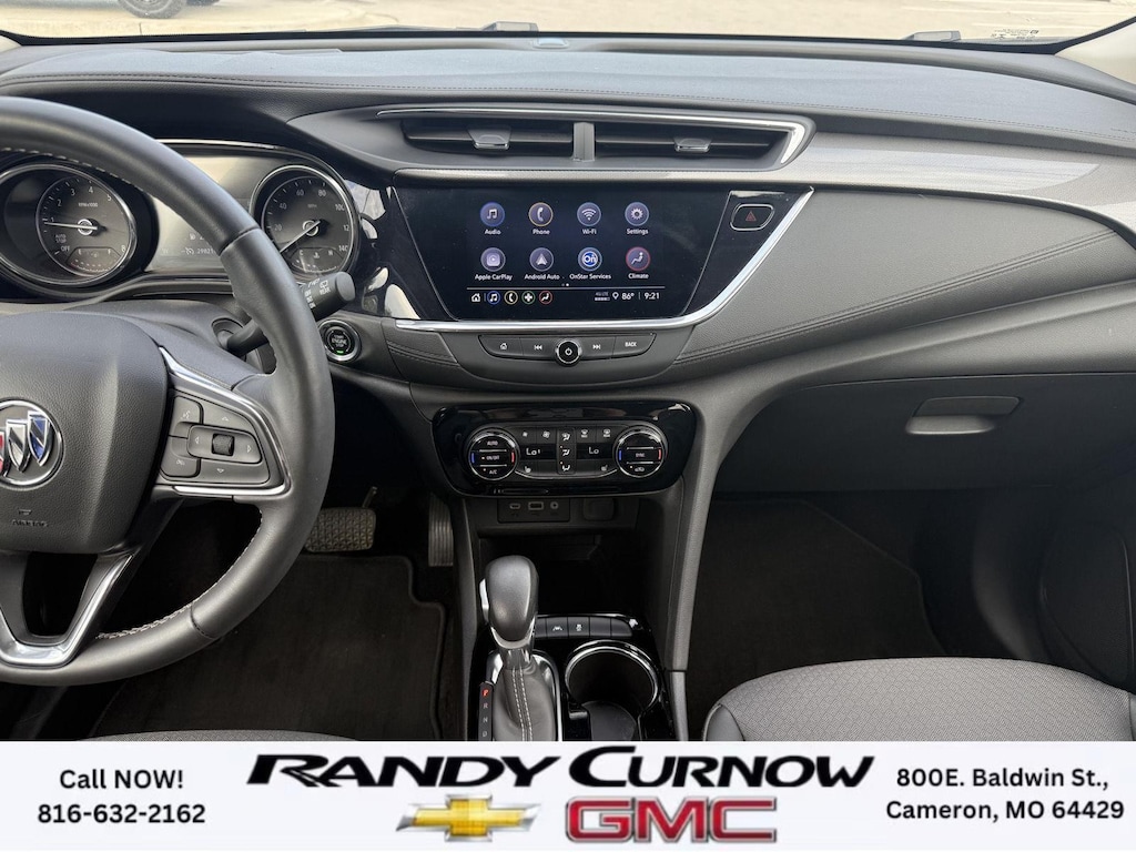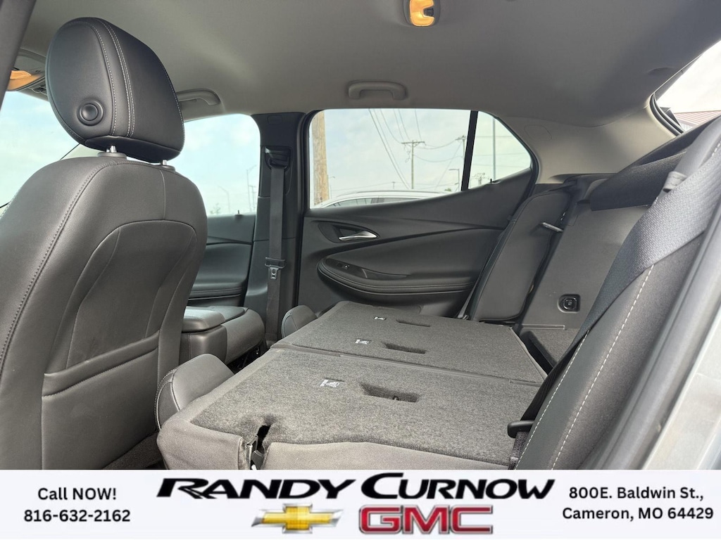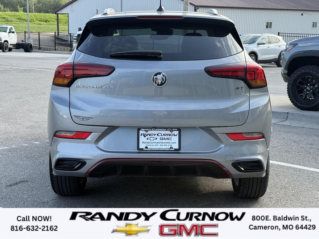 This 2023 Buick Encore GX Select, has a Moonstone Gray Metallic exterior with a Ebony with Ebony interior accents interior. Call us at 816-632-2162 and reference stock Number 7690A for further details. No Accidents! One Owner! IMPORTANT PACKAGE INFORMATION: Sport Touring Package ($695 value)Body Color Rocker MoldingsBody-Color Bodyside MoldingsSport Touring BadgeCustom Grille with Red Accents18" Aluminum Wheels with Dark Android High Gloss InsertsRed Front and Rear Bumper Protective MoldingSport Front Bumper with Red AccentsSport Rear Bumper with Red AccentsSafety Package II ($200 value)Rear Cross Traffic AlertLane Change Alert with Side Blind Zone AlertPreferred Equipment Group 1SDHeated Driver and Front Passenger SeatsHands-Free Power Liftgate Package ($595 value)Hands Free Power Liftgate Safety and Security The vehicle is equipped with a system that senses, and then prepares, the vehicle and/or occupants, for an impending forward collision. The vehicle constantly monitors the roadway in front of the vehicle and identifies and tracks pedestrians on an interior display. If the system determines a likely impact, it will automatically take preventative steps to avoid hitting the pedestrian. The vehicle is equipped with a camera that displays an image of the area behind the vehicle on an interior display.Technology and Telematics Wireless Apple CarPlay/Wireless Android Auto smart device wireless mirroring Mobile devices can wirelessly connect to the internet through the vehicle's private mobile network. OTHER NOTABLE FEATURES AND OPTIONS YOU SHOULD KNOW ABOUT: ENGINE, ECOTEC 1.3L TURBO, TRANSMISSION, CONTINUOUSLY VARIABLE (CVT), SPORT TOURING PACKAGE, HANDS-FREE POWER LIFTGATE PACKAGE, LIFTGATE, POWER, HANDS FREE, AUX HEATER, ELECTRIC, HEATING/DEFROSTER, LANE CHANGE ALERT WITH SIDE BLIND ZONE ALERT, REAR CROSS TRAFFIC ALERT Keyless start, push button, Engine air filtration monitor, Coolant protection, engine, Front-wheel drive, Glass, deep-tinted, Seats, heated driver and front passenger (Beginning with start of production, vehicles will be forced to include (00V) Not Equipped with Heated Driver and Front Passenger Seats, which removes heated driver and front passenger seats. See dealer for details or the window label for the features on a specific vehicle.), USB charging ports, 2 (1 USB Type-A, 1 USB Type-C), charging only, HVAC duct, underneath rear right-passenger seat, Teen Driver a configurable feature that lets you activate customizable vehicle settings associated with a key fob, to help encourage safe driving behavior. It can limit certain available vehicle features, and it prevents certain safety systems from being turned off. An in-vehicle report card gives you information on driving habits and helps you to continue to coach your new driver SERVING OUR FRIENDS AND NEIGHBORS IN CAMERON AND THE SURROUNDING AREA! At Randy Curnow Chevrolet GMC, we strive everyday to provide a car-buying and -servicing experience that's truly unparalleled. We offer incredibly low prices on our Chevrolet, GMC models for sale, while also giving back to the community that supports us. Plus, we're the home of the free lifetime warranty! Hurry down to our Chevy dealership in Cameron, MO, now to see what we have in store for you. No matter if you're shopping for a new Chevy truck, GMC SUV or Buick luxury car, you'll find what you're looking for on our lot. Our nearby MO GMC dealership offers truly massive new, used and Certified Pre-Owned car inventories for you to browse. What's more, if you want to save on the new Buick SUV or Chevrolet model that you have your eye on, make sure to check out our new GMC lease specials and finance offers. We're always updating our Buick lease and Chevy financing incentives to include all your favorite vehicles, so stop by Randy Curnow Chevrolet GMC today! FINANCING OPTIONS: Take advantage of our attractive low-rate financing options. Our access to various Credit Unions and National Banks can provide financing for