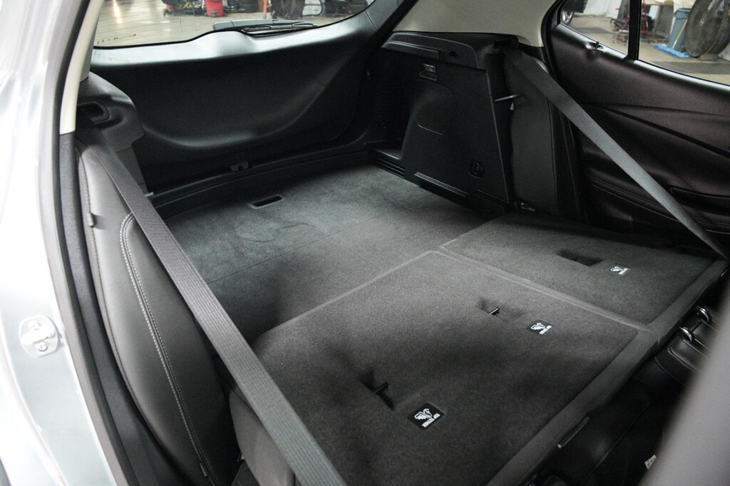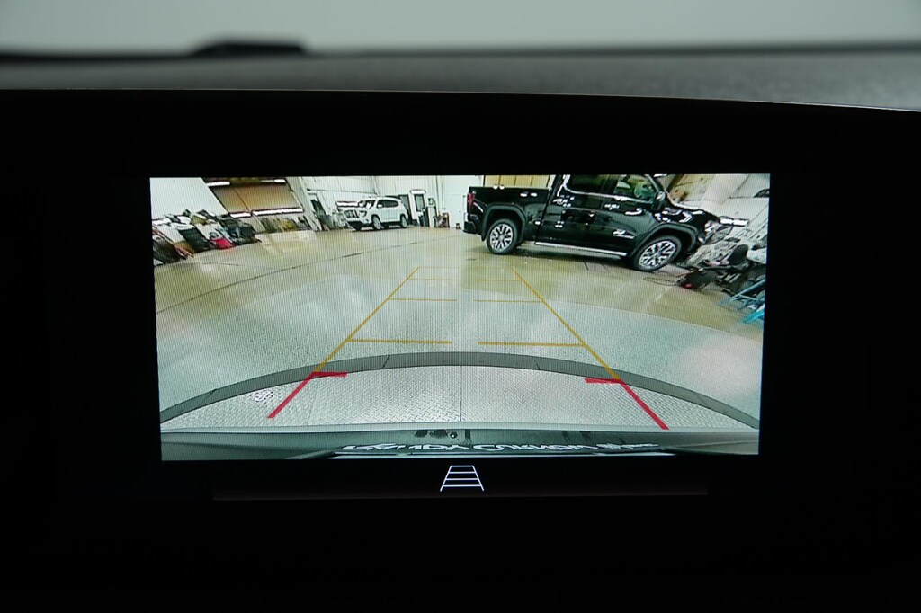 - The vehicle is equipped with a camera that displays an image of the area behind the vehicle on an interior display.