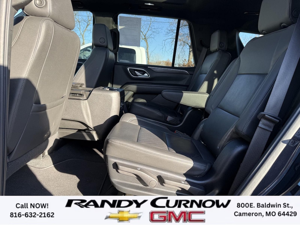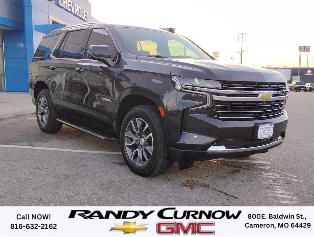 This 2022 Chevrolet Tahoe LT, has a Dark Ash Metallic exterior with a Jet Black interior. Call us at 816-632-2162 and reference stock Number 7740A for further details. IMPORTANT PACKAGE INFORMATION: Driver Alert PackageRear Cross Traffic AlertLane Change Alert with Side Blind Zone AlertLuxury PackageMemory Settings3rd Row 60/40 Power-Folding Split-Bench Seat2nd Row Power Release 60/40 Split-Folding Bench SeatOutside Heated Power-Adjustable MirrorsHeated 2nd Row Outboard SeatsHeated Steering WheelPower Tilt and Telescopic Steering ColumnRear Pedestrian AlertHD Surround VisionLT Signature Plus Package ($4,325 value)Dual-Pane Power Panoramic Sunroof20" X 9" Painted Aluminum WheelsPreferred Equipment Group 1LTFront High-Back Reclining Bucket SeatsMemory Settings For DriverDriver and Front Outboard Passenger AirbagsColor-Keyed Carpeting Floor Covering1st and 2nd Row Color-Keyed Carpeted Floor MatsRemote StartBright Front and Rear Door Sill PlatesFloor Console with Storage AreaAuto-Dimming Inside Rearview MirrorStop/start System Disable ButtonChevrolet Infotainment 3 Premium System RadioWireless ChargingAutomatic Stop/startLeather-Wrapped Steering WheelLeather-Appointed Seat TrimLED Daytime Running LampsHands-Free Rear Power Programmable LiftgateSiriusXM Radio with 360LEnhanced Driver Information CenterUniversal Home RemoteInfotainment DisplayBose 9-Speaker Stereo Audio System Feature Safety and Security The vehicle is equipped with a system that senses, and then prepares, the vehicle and/or occupants, for an impending forward collision. The vehicle is equipped with a system that senses, and then prepares, the vehicle and/or occupants, for an impending forward collision. The vehicle constantly monitors the roadway in front of the vehicle and identifies and tracks pedestrians on an interior display. If the system determines a likely impact, it will automatically take preventative steps to avoid hitting the pedestrian.Technology and Telematics Apple CarPlay/Android Auto smart device wireless mirroring Mobile devices can wirelessly connect to the internet through the vehicle's private mobile network. OTHER NOTABLE FEATURES AND OPTIONS YOU SHOULD KNOW ABOUT: EMISSIONS, FEDERAL REQUIREMENTS, ENGINE, 5.3L ECOTEC3 V8, TRANSMISSION, 10-SPEED AUTOMATIC, GVWR, 7500 LBS. (3402 KG), REAR AXLE, 3.23 RATIO, WHEELS, 20" X 9" (50.8 CM X 22.9 CM) PAINTED ALUMINUM WITH MACHINE FACE AND ARGENT METALLIC POCKETS, TIRES, 275/60R20SL ALL-SEASON, BLACKWALL, SEATS, FRONT BUCKET, JET BLACK, LEATHER-APPOINTED SEATING SURFACES 1ST AND 2ND ROW, AUDIO SYSTEM, CHEVROLET INFOTAINMENT 3 PREMIUM SYSTEM WITH GOOGLE BUILT-IN, LT SIGNATURE PLUS PACKAGE, LUXURY PACKAGE, DRIVER ALERT PACKAGE, SUNROOF, POWER PANORAMIC, DUAL-PANE, TILT-SLIDING, MIRRORS, OUTSIDE HEATED POWER-ADJUSTABLE, POWER-FOLDING, DRIVER-SIDE AUTO-DIMMING, SEATS, HEATED SECOND ROW OUTBOARD SEATS, SEATS, SECOND ROW BUCKET, POWER RELEASE, SEATS, THIRD ROW 60/40 SPLIT-BENCH, POWER FOLDING, CONSOLE, FLOOR, POWER-SLIDING CENTER, NOT EQUIPPED WITH STEERING COLUMN LOCK, STEERING COLUMN, POWER TILT AND TELESCOPIC, STEERING WHEEL, HEATED, MEMORY SETTINGS, RECALLS 2 "DRIVER" PRESETS FOR POWER DRIVER SEAT, OUTSIDE REARVIEW MIRRORS AND POWER AND TILT AND TELESCOPIC STEERING COLUMN, HD SURROUND VISION, REAR CROSS TRAFFIC ALERT, REAR PEDESTRIAN ALERT, LANE CHANGE ALERT WITH SIDE BLIND ZONE ALERT SERVING OUR FRIENDS AND NEIGHBORS IN CAMERON AND THE SURROUNDING AREA! At Randy Curnow Chevrolet GMC, we strive everyday to provide a car-buying and -servicing experience that's truly unparalleled. We offer incredibly low prices on our Chevrolet, GMC models for sale, while also giving back to the community that supports us. Plus, we're the home of the free lifetime warranty! Hurry down to our Chevy dealership in Cameron, MO, now to see what we have in store for you. No matter if you're shopping for a new Chevy truck, GMC SUV or Buick luxury car, you'll find what you're looking for on our lot. Our nearby MO GMC dealership offe