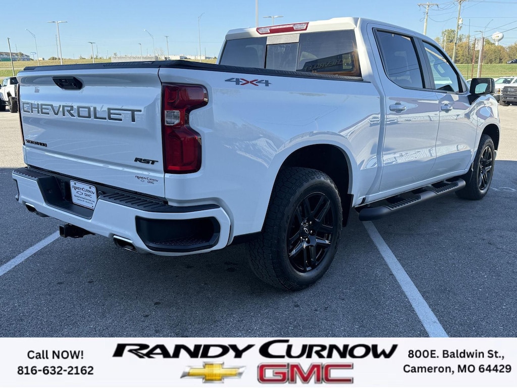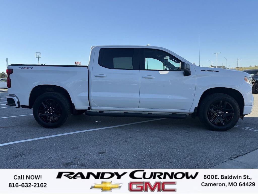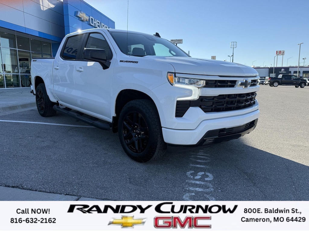 This 2023 Chevrolet Silverado 1500 RST, has a Summit White exterior with a Jet Black interior. Call us at 816-632-2162 and reference stock Number U8002 for further details. No Accidents! One Owner! IMPORTANT PACKAGE INFORMATION: Convenience Package II ($1,340 value)Power Sliding Rear Window with Rear DefoggerIntegrated Trailer Brake ControllerHitch Guidance with Hitch ViewTrailering AppUniversal Home RemotePremium Bose 7-Speaker Sound SystemDark Essentials Package ($350 value)Black Name PlatesBlack Tailgate CHEVROLET LetteringPreferred Equipment Group 1SPSiriusXM with 360LRear 60/40 Folding Bench Seat (folds Up)Power Front Windows with Passenger Express DownPower Rear Windows with Express DownDeep-Tinted GlassPower Front Windows with Driver Express Up/downColor-Keyed Carpeting Floor CoveringFront Rubberized Vinyl Floor MatsRear Rubberized-Vinyl Floor MatsBluetooth For PhoneCompassInside Rearview Mirror with TiltHeated Power-Adjustable Outside MirrorsHigh Gloss Black Mirror CapsAuto-Locking Rear DifferentialElectronic Cruise ControlElectrical Steering Column LockSingle-Speed Transfer CaseConvenience PackageAll-Star EditionChevy Safety AssistWireless Phone ProjectionStandard TailgateEZ Lift Power Lock and Release TailgateCloth Seat TrimFront LED Fog Lamps12.3" Multicolor Reconfigurable Digital DisplayOnStar and Chevrolet Connected Services CapableLED Cargo Area LightingSteering Wheel Audio Controls6-Speaker Audio SystemHD Rear Vision CameraFront Frame-Mounted Black Recovery HooksTrailering PackageLiner Protection Package (LPO) ($375 value)All-Weather Floor LinerRear Wheel House Liners Safety and Security The vehicle is equipped with a system that senses, and then prepares, the vehicle and/or occupants, for an impending forward collision. The vehicle constantly monitors the roadway in front of the vehicle and identifies and tracks pedestrians on an interior display. If the system determines a likely impact, it will automatically take preventative steps to avoid hitting the pedestrian. The vehicle constantly monitors the roadway in front of the vehicle and identifies and tracks pedestrians on an interior display. If the system determines a likely impact, it will automatically take preventative steps to avoid hitting the pedestrian.Technology and Telematics Apple CarPlay/Android Auto smart device wireless mirroring Mobile devices can wirelessly connect to the internet through the vehicle's private mobile network. OTHER NOTABLE FEATURES AND OPTIONS YOU SHOULD KNOW ABOUT: SERVING OUR FRIENDS AND NEIGHBORS IN CAMERON AND THE SURROUNDING AREA! At Randy Curnow Chevrolet GMC, we strive everyday to provide a car-buying and -servicing experience that's truly unparalleled. We offer incredibly low prices on our Chevrolet, GMC models for sale, while also giving back to the community that supports us. Hurry down to our Chevy dealership in Cameron, MO, now to see what we have in store for you. No matter if you're shopping for a new Chevy truck, GMC SUV or Buick luxury car, you'll find what you're looking for on our lot. Our nearby MO GMC dealership offers truly massive new, used and Certified Pre-Owned car inventories for you to browse. What's more, if you want to save on the new Buick SUV or Chevrolet model that you have your eye on, make sure to check out our new GMC lease specials and finance offers. We're always updating our Buick lease and Chevy financing incentives to include all your favorite vehicles, so stop by Randy Curnow Chevrolet GMC today! FINANCING OPTIONS: Take advantage of our attractive low-rate financing options. Our access to various Credit Unions and National Banks can provide financing for most credit levels. We can tailor a finance package to fit your needs. To get started, complete our secure online credit application.