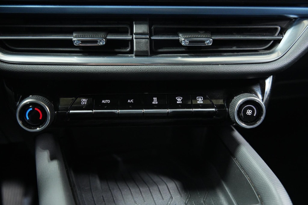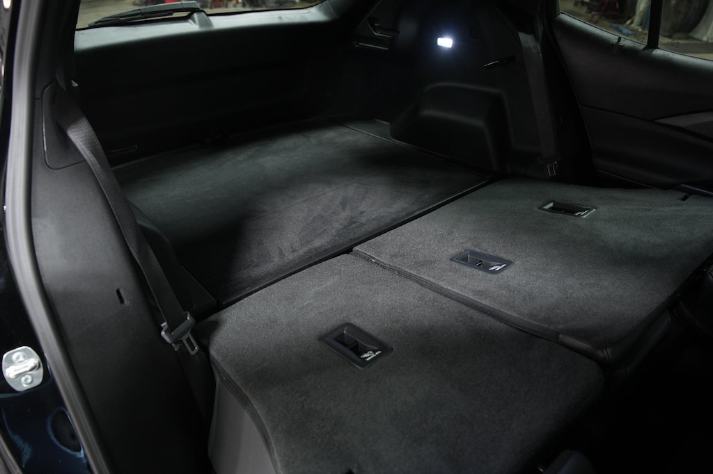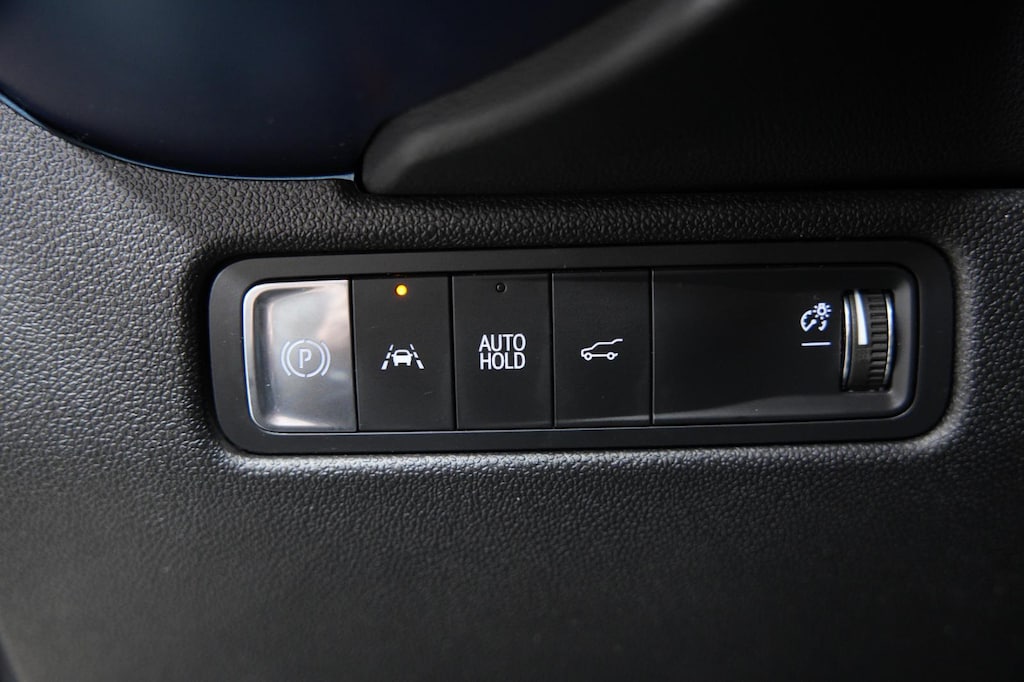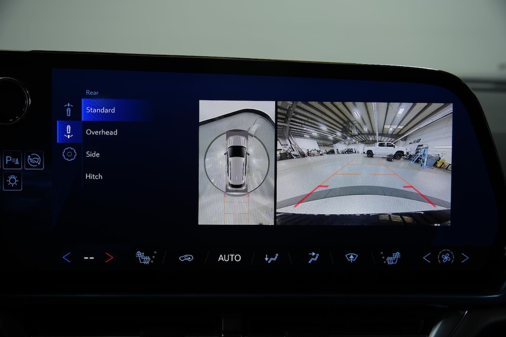 - The vehicle is equipped with a camera that displays an image of the area behind the vehicle on an interior display.