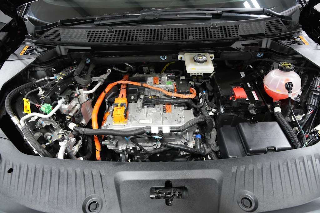 OTHER NOTABLE FEATURES AND OPTIONS YOU SHOULD KNOW ABOUT: EMISSIONS, FEDERAL REQUIREMENTS, PROPULSION, FRONT WHEEL DRIVE, ENGINE, NONE, DUAL LEVEL CHARGE CORD, DUAL-MODE, PORTABLE, 120-VOLT (1.4 KW) AND 240-VOLT (7.7 KW) CAPABILITY, TRANSMISSION, NONE (ELECTRIC DRIVE UNIT), WHEELS, 19" (48.3CM), BLACK, SEATS, FRONT BUCKET, BLACK WITH BLUE ACCENTS, EVOTEX SEAT TRIM