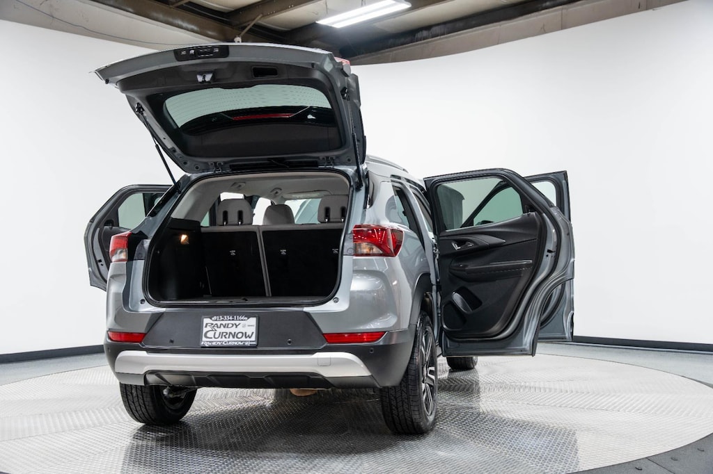 OTHER NOTABLE FEATURES AND OPTIONS YOU SHOULD KNOW ABOUT: EMISSIONS, FEDERAL REQUIREMENTS, ENGINE, ECOTEC 1.3L I3 TURBO DOHC SIDI WITH VARIABLE VALVE TIMING (VVT), TRANSMISSION, 9-SPEED AUTOMATIC, AXLE, 3.17 FINAL DRIVE RATIO, WHEELS, 18" (45.7 CM) HIGH GLOSS BLACK MACHINED ALUMINUM, TIRES, 225/55R18 ALL-SEASON, BLACKWALL, STERLING GRAY METALLIC, SEATS, FRONT BUCKET, JET BLACK/MEDIUM ASH GRAY, CLOTH SEAT TRIM, AUDIO SYSTEM, 11" DIAGONAL HD COLOR TOUCHSCREEN, AM/FM STEREO., DRIVER CONFIDENCE PACKAGE, REAR PARK ASSIST, REAR CROSS TRAFFIC ALERT, LANE CHANGE ALERT WITH SIDE BLIND ZONE ALERT