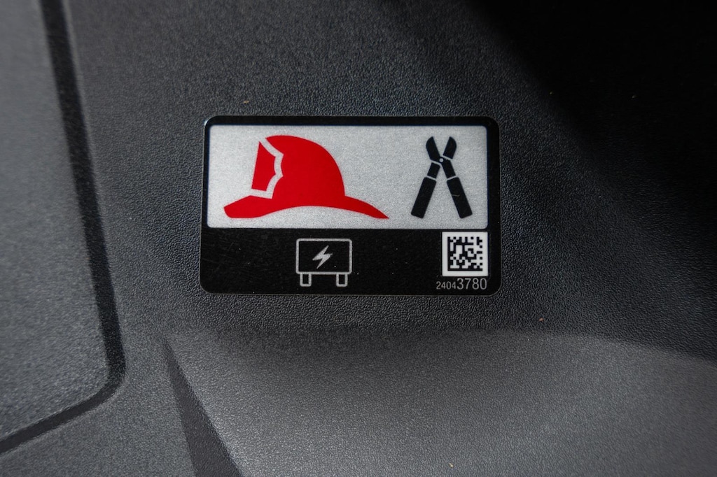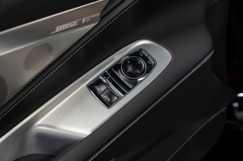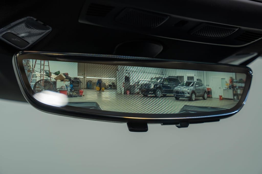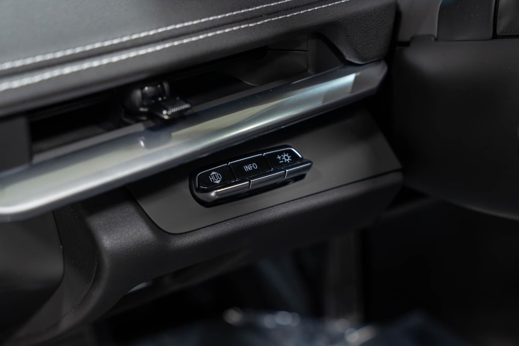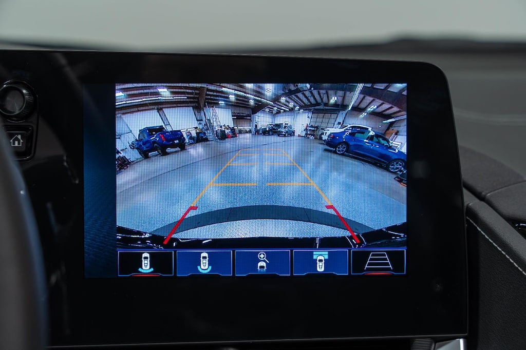 - The vehicle is equipped with a camera that displays an image of the area behind the vehicle on an interior display.