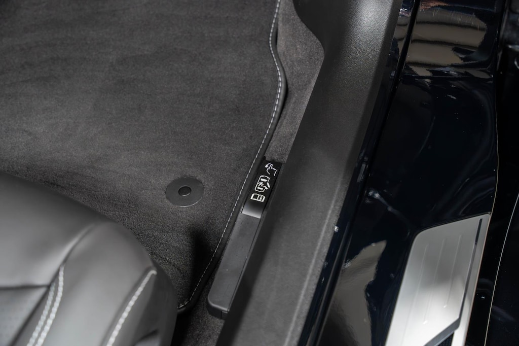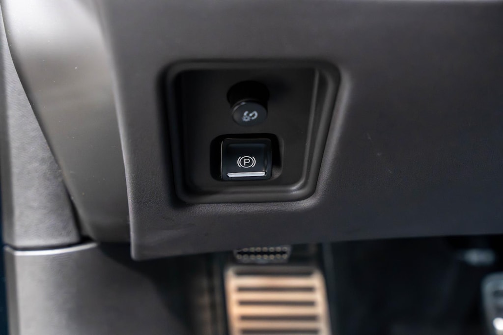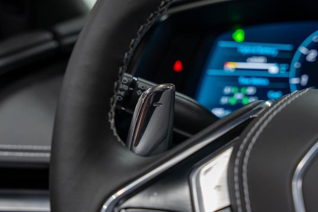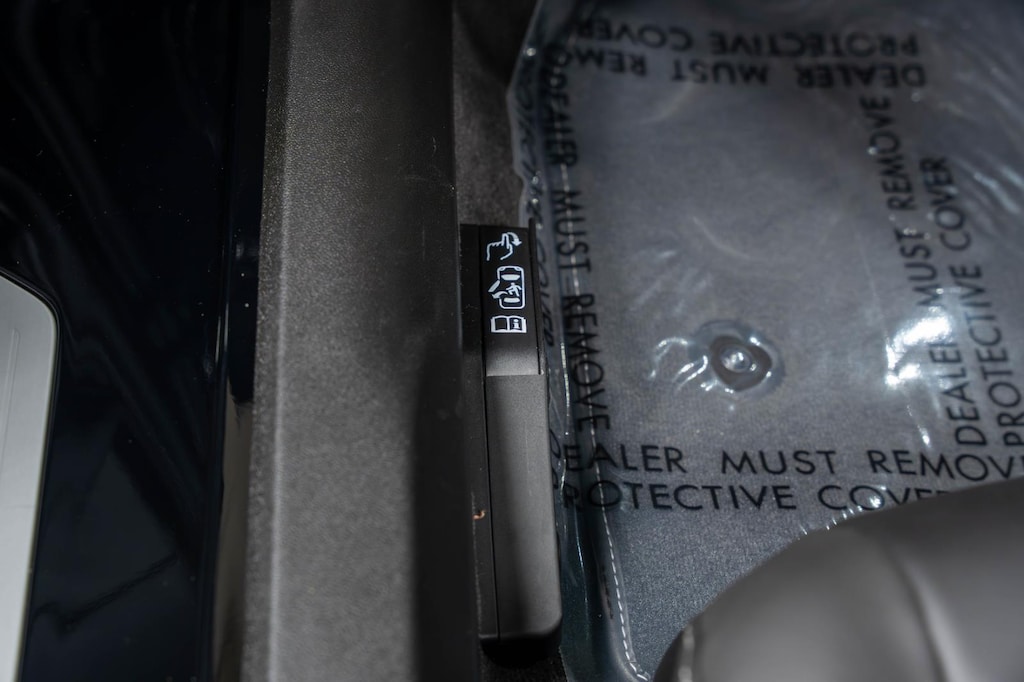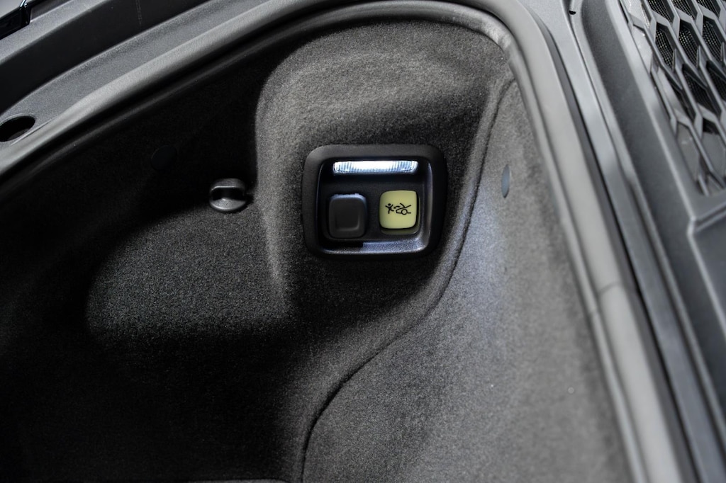 - The vehicle is equipped with a camera that displays an image of the area behind the vehicle on an interior display.