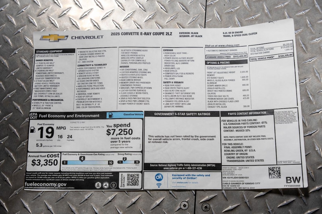2025 Chevrolet Corvette 2LZ, has a Black exterior with a Jet Black interior. Call us at 913-601-5486 and reference stock Number 214079 for further details.