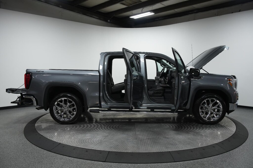 This 2020 GMC Sierra 1500 SLT, has a Satin Steel Metallic exterior with a Jet Black interior. Call us at 913-601-5486 and reference stock Number 112292A for further details. IMPORTANT PACKAGE INFORMATION: SLT Convenience PackagePower Sliding Rear Window with Rear DefoggerFront Bucket SeatsFloor-Mounted Center ConsoleHeated 2nd Row Outboard SeatsVentilated Driver and Front Passenger Seats2 USB Ports2 USB Ports (1st Row)Universal Home RemoteDriver Alert Package IPerimeter LightingUltrasonic Front and Rear Park AssistRear Cross Traffic AlertLane Change Alert with Side Blind Zone AlertDriver Alert Package IISafety Alert SeatAdaptive Cruise Control - CameraIntelliBeam Automatic High Beam On/offFollowing Distance IndicatorForward Collision AlertLane Keep Assist with Lane Departure WarningAutomatic Emergency BrakingFront Pedestrian BrakingSLT Preferred PackagePremium GMC Infotainment System Radio with NavigationWireless ChargingPremium Bose 7-Speaker Sound SystemSLT Premium Plus Package ($6,160 value)Chrome Wheel to Wheel Assist StepsSpray-On Pickup Bed Liner with GMC LogoPreferred Equipment Group 4SAGMC Connected Access CapablePower Front Passenger Windows with Express Up/downPower Rear Windows with Express DownDeep-Tinted GlassKeyless Open and StartPower Door LocksPower Front Windows with Driver Express Up/downRear Wheelhouse LinersColor-Keyed Carpeting Floor CoveringRemote Vehicle Starter SystemElectric Rear-Window DefoggerCompassHitch GuidanceHeavy-Duty Rear Locking DifferentialChrome GrilleIntegrated Trailer Brake ControllerHeated Driver and Front Outboard Passenger Seating120-Volt Instrument Panel Power OutletAuxiliary External Transmission Oil Cooler12-Volt Rear Auxiliary Power Outlet170 Amp Alternator5.3L EcoTec3 V8 EngineElectrical Lock Control Steering ColumnManual Tilt-Wheel and Telescoping Steering ColumnSingle Speed Transfer CaseProGrade Trailering SystemHD RadioOnStar and GMC Connected Services CapableLED Cargo Area LightingSteering Wheel Audio ControlsRear Dual USB Charging-Only PortsTheft Deterrent System (unauthorized Entry)Front Frame-Mounted Black Recovery Hooks4G LTE Wi-Fi Hotspot CapableTrailering Package Safety and Security The vehicle is equipped with a system that senses, and then prepares, the vehicle and/or occupants, for an impending forward collision. The vehicle constantly monitors the roadway in front of the vehicle and identifies and tracks pedestrians on an interior display. If the system determines a likely impact, it will automatically take preventative steps to avoid hitting the pedestrian. The vehicle is equipped with a camera that displays an image of the area behind the vehicle on an interior display.Technology and Telematics Without the need for a manufacturer specific app to be installed on the smart device, the vehicle infotainment system can access and control functions of a smart device physically plugged-into the vehicle. Mobile devices can wirelessly connect to the internet through the vehicle's private mobile network. OTHER NOTABLE FEATURES AND OPTIONS YOU SHOULD KNOW ABOUT: EMISSIONS, FEDERAL REQUIREMENTS, ENGINE, 5.3L ECOTEC3 V8, TRANSMISSION, 8-SPEED AUTOMATIC, ELECTRONICALLY CONTROLLED, GVWR, 7100 LBS. (3221 KG), REAR AXLE, 3.23 RATIO, WHEELS, 22" TRANSIT STEEL WHEELS FOR LPO 22" WHEELS AND TIRES, TIRES, 275/50R22SL ALL-SEASON, BLACKWALL, SATIN STEEL METALLIC, SEATS, FRONT BUCKET, JET BLACK, PERFORATED LEATHER-APPOINTED FRONT SEAT TRIM, AUDIO SYSTEM, PREMIUM GMC INFOTAINMENT SYSTEM WITH NAVIGATION AND 8" DIAGONAL COLOR TOUCH-SCREEN, INCLUDES MULTI-TOUCH DISPLAY, AM/FM STEREO, SLT PREMIUM PLUS PACKAGE, SLT CONVENIENCE PACKAGE, SLT PREFERRED PACKAGE, DRIVER ALERT PACKAGE I, DRIVER ALERT PACKAGE II, LPO, 22" (55.9 CM) BRIGHT CHROME WHEELS, TIRE, SPARE 255/80R17SL ALL-SEASON, BLACKWALL, SUNROOF, POWER, ASSIST STEPS, CHROME WHEEL TO WHEEL, INTELLIBEAM, AUTOMATIC HIGH BEAM ON/OFF, WINDOW, POWER, REAR SLIDING WITH REAR DEFOGGER, LICENSE PLATE KIT, FRONT, BED LINER, SPRAY-ON, BOSE SOUND SYSTE
