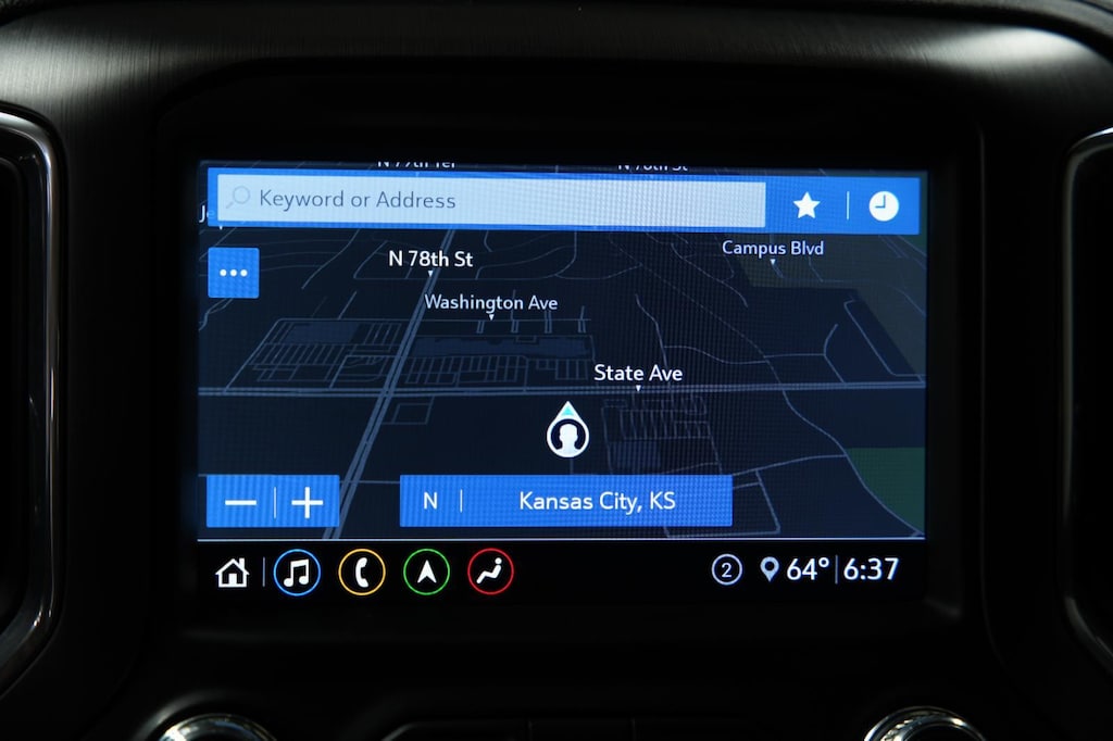 This 2020 GMC Sierra 1500 AT4, has a Dark Sky Metallic exterior with a Jet Black with Kalahari accents interior. Call us at 913-601-5486 and reference stock Number 112557B for further details. IMPORTANT PACKAGE INFORMATION: Driver Alert Package IPerimeter LightingUltrasonic Front and Rear Park AssistRear Cross Traffic AlertLane Change Alert with Side Blind Zone AlertDriver Alert Package II ($1,095 value)Safety Alert SeatAdaptive Cruise Control - CameraIntelliBeam Automatic High Beam On/offFollowing Distance IndicatorForward Collision AlertLane Keep Assist with Lane Departure WarningAutomatic Emergency BrakingFront Pedestrian BrakingAT4 Preferred PackagePower Sliding Rear Window with Rear DefoggerPremium GMC Infotainment System Radio with NavigationWireless ChargingUniversal Home RemotePremium Bose 7-Speaker Sound SystemAT4 Premium Package ($2,855 value)LT275/65R18C MT BW Tires6" Rectangular Black Tubular Assist StepsTechnology Package ($2,125 value)High Gloss Black Mirror CapsRear Camera Mirror8" Driver Information CenterMulticolor 15" Diagonal Head-Up DisplayBed View CameraHD Surround Vision with 2 Trailer View Camera ProvisionsPreferred Equipment Group 4SBAll-Weather Floor Liners with AT4 LogoGMC Connected Access CapablePower Front Passenger Windows with Express Up/downPower Rear Windows with Express DownDeep-Tinted GlassKeyless Open and StartPower Door LocksPower Front Windows with Driver Express Up/downRear Wheelhouse LinersColor-Keyed Carpeting Floor CoveringRemote Vehicle Starter SystemElectric Rear-Window DefoggerSpray-On Pickup Bed Liner with AT4 LogoCompassHitch GuidanceFloor-Mounted Center ConsoleHeavy-Duty Rear Locking DifferentialBody-Color Surround GrilleHill Descent ControlIntegrated Trailer Brake ControllerHigh-Capacity Air FilterHeated Driver and Front Outboard Passenger SeatingHeated 2nd Row Outboard Seats120-Volt Instrument Panel Power OutletAuxiliary External Transmission Oil Cooler12-Volt Rear Auxiliary Power OutletVentilated Driver and Front Passenger Seats170 Amp Alternator2 USB Ports2 USB Ports (1st Row)Electrical Lock Control Steering ColumnManual Tilt-Wheel and Telescoping Steering Column2-Speed Transfer CaseSkid PlatesProGrade Trailering System18" X 8.5" Machined Aluminum WheelsHD Radio4.2" Diagonal Color Display Driver Info CenterOnStar and GMC Connected Services CapableLED Cargo Area LightingRed Recovery HooksSteering Wheel Audio ControlsRear Dual USB Charging-Only PortsTheft Deterrent System (unauthorized Entry)HD Rear Vision Camera4G LTE Wi-Fi Hotspot CapableOff-Road SuspensionTrailering Package Safety and Security The vehicle is equipped with a system that senses, and then prepares, the vehicle and/or occupants, for an impending forward collision. The vehicle constantly monitors the roadway in front of the vehicle and identifies and tracks pedestrians on an interior display. If the system determines a likely impact, it will automatically take preventative steps to avoid hitting the pedestrian. The vehicle is equipped with a camera that displays an image of the area behind the vehicle on an interior display.Technology and Telematics Without the need for a manufacturer specific app to be installed on the smart device, the vehicle infotainment system can access and control functions of a smart device physically plugged-into the vehicle. Mobile devices can wirelessly connect to the internet through the vehicle's private mobile network. OTHER NOTABLE FEATURES AND OPTIONS YOU SHOULD KNOW ABOUT: EMISSIONS, FEDERAL REQUIREMENTS, ENGINE, 6.2L ECOTEC3 V8, TRANSMISSION, 10-SPEED AUTOMATIC, ELECTRONICALLY CONTROLLED, GVWR, 7000 LBS. (3175 KG), REAR AXLE, 3.23 RATIO, WHEELS, 18" X 8.5" (45.7 CM X 21.6 CM) MACHINED ALUMINUM, TIRES, LT275/65R18C MT BLACKWALL GOODYEAR WRANGLER DURATRAC, DARK SKY METALLIC, SEATS, FRONT BUCKET, JET BLACK WITH KALAHARI ACCENTS, PERFORATED LEATHER-APPOINTED FRONT SEAT TRIM, AUDIO SYSTEM, PREMIUM GMC INFOTAINMENT SYSTEM WITH NAVIGATION AND 8" DIAGONAL COLOR TOUCH-SCREEN, INCLUDES MUL