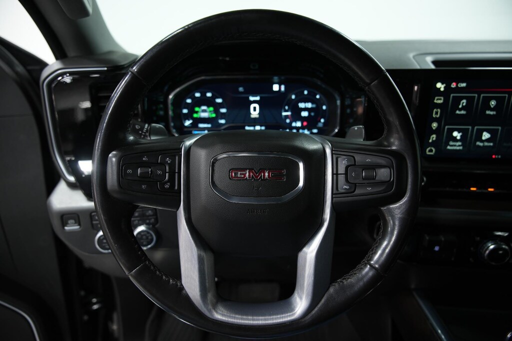 This 2022 GMC Sierra 1500 SLT, has a Onyx Black exterior with a Jet Black interior. Call us at 913-601-5486 and reference stock Number 214152 for further details. IMPORTANT PACKAGE INFORMATION: SLT Convenience PackageFront Bucket SeatsFloor-Mounted Center ConsoleWireless ChargingVentilated Driver and Front Passenger SeatsPower Rake and Telescoping Steering ColumnPremium Bose 7-Speaker Sound SystemX31 Off-Road and Protection Package ($2,325 value)Spray-On Pickup Bed Liner with GMC Logo20" Polished Aluminum Wheels275/60R20SL AT BW TiresAll-Weather Floor LinerX31 Off-Road Package ($950 value)Hill Descent ControlHeavy-Duty Air FilterDual Exhaust System2-Speed Transfer CaseSkid PlatesX31 Hard BadgeSLT Preferred PackagePower Sliding Rear Window with Rear DefoggerHeated 2nd Row Outboard SeatsAdaptive Cruise ControlUniversal Home RemoteSLT Premium Plus Package ($5,550 value)Chrome Wheel to Wheel Assist StepsSpray-On Pickup Bed Liner with GMC Logo20" Polished Aluminum WheelsProGrade Trailering SystemIntegrated Trailer Brake ControllerHitch Guidance with Hitch ViewIn-Vehicle Trailering AppPreferred Equipment Group 4SAGMC Connected Access CapablePower Front Passenger Windows with Express Up/downPower Rear Windows with Express DownDeep-Tinted GlassPower Door LocksKeyless Open and StartPower Front Windows with Driver Express Up/downRear Wheelhouse LinersColor-Keyed Carpeting Floor CoveringPush Button StartRemote Vehicle Starter SystemElectric Rear-Window DefoggerFront Rainsensing WipersCompassAuto-Locking Rear DifferentialChrome Header and Chrome Grille Insert BarsHeated Steering Wheel120-Volt Instrument Panel Power OutletAuxiliary External Transmission Oil Cooler170 Amp Alternator5.3L EcoTec3 V8 EngineElectrical Steering Column LockManual Tilt-Wheel and Telescoping Steering ColumnSingle Speed Transfer CaseGMC Pro SafetyWireless Phone ProjectionPerimeter LightingSiriusXM with 360L2 type-C Charge-Only Rear USB Ports2 Charge/data USB PortsOnStar and GMC Connected Services CapableLED Cargo Area LightingSteering Wheel Audio Controls6-Speaker Audio System FeatureTheft Deterrent System (unauthorized Entry)HD Rear Vision CameraFront Frame-Mounted Black Recovery HooksWi-Fi Hotspot CapableTrailering PackageSierra Safety Plus PackageSafety Alert SeatTrailer Camera ProvisionsUltrasonic Front and Rear Park AssistRear Cross Traffic BrakingRear Pedestrian DetectionTrailer Side Blind Zone AlertHD Surround Vision Safety and Security The vehicle is equipped with a system that senses, and then prepares, the vehicle and/or occupants, for an impending forward collision. The vehicle constantly monitors the roadway in front of the vehicle and identifies and tracks pedestrians on an interior display. If the system determines a likely impact, it will automatically take preventative steps to avoid hitting the pedestrian.Technology and Telematics Android Auto/Apple CarPlay smart device wireless mirroring Apple CarPlay/Android Auto smart device wireless mirroring Wireless Apple CarPlay/Wireless Android Auto smart device wireless mirroring OTHER NOTABLE FEATURES AND OPTIONS YOU SHOULD KNOW ABOUT: EMISSIONS, FEDERAL REQUIREMENTS, ENGINE, 5.3L ECOTEC3 V8, TRANSMISSION, 10-SPEED AUTOMATIC WITH ELECTRONIC PRECISION SHIFT, ELECTRONICALLY CONTROLLED, GVWR, 7100 LBS. (3221 KG), REAR AXLE, 3.23 RATIO, WHEELS, 20" POLISHED ALUMINUM WHEELS, TIRES, 275/60R20SL ALL-TERRAIN, BLACKWALL, TIRE, SPARE 255/80R17SL ALL-SEASON, BLACKWALL, ONYX BLACK, SEATS, FRONT BUCKET, JET BLACK, PERFORATED LEATHER-APPOINTED FRONT OUTBOARD SEAT TRIM, AUDIO SYSTEM, 13.4 " DIAGONAL PREMIUM GMC INFOTAINMENT SYSTEM WITH GOOGLE BUILT IN, INCLUDES COLOR TOUCH-SCREEN, MULTI-TOUCH DISPLAY, AM/FM STEREO, SLT PREMIUM PLUS PACKAGE, X31 OFF-ROAD AND PROTECTION PACKAGE, SIERRA SAFETY PLUS PACKAGE, SLT CONVENIENCE PACKAGE, X31 OFF-ROAD PACKAGE, SLT PREFERRED PACKAGE, PROGRADE TRAILERING SYSTEM, AIR FILTER, HEAVY-DUTY, ELECTRONIC PRECISION SHIFT AND STEERING COLUMN PADDLE SHIFTERS, HILL DESCENT CONTROL, TRANSFER CAS