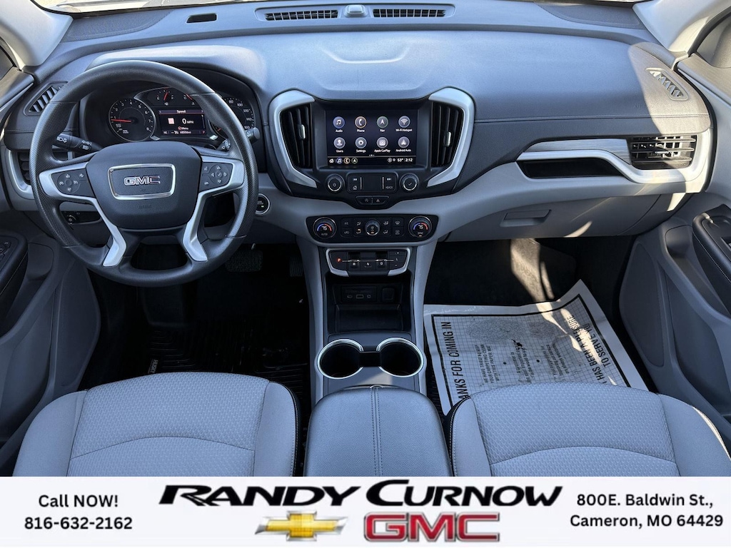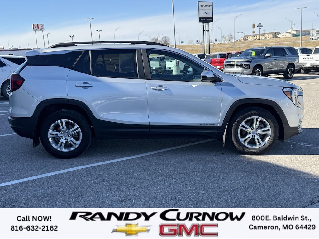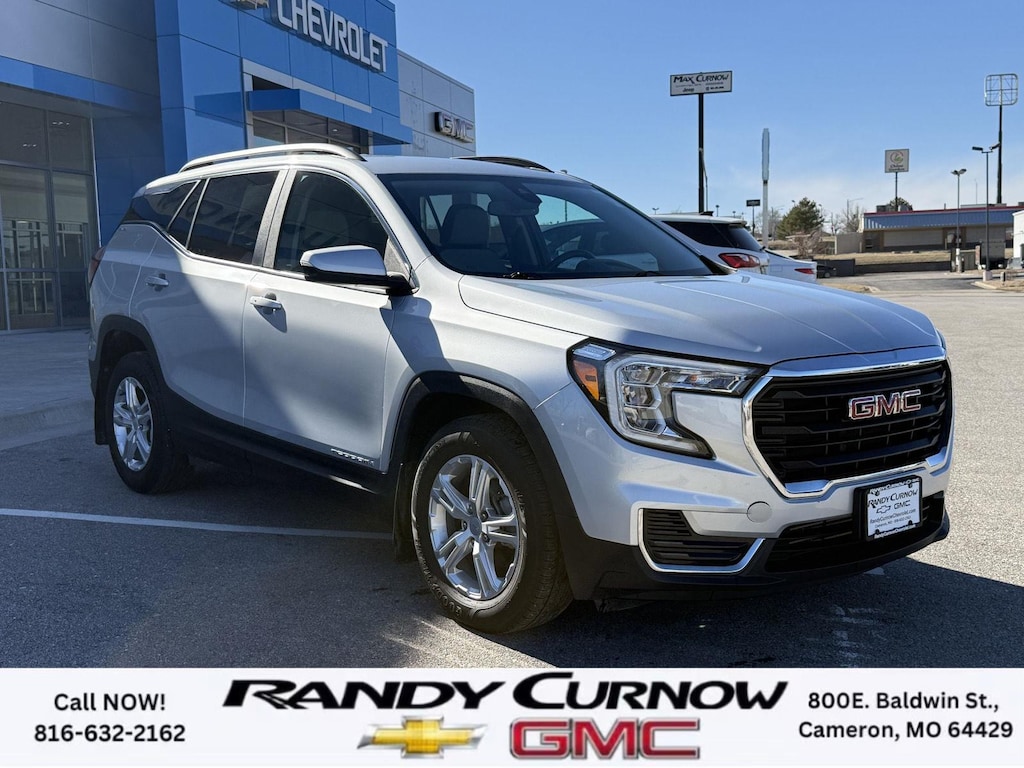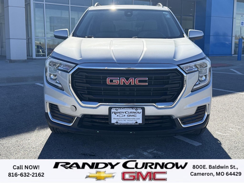 This 2022 GMC Terrain SLE, has a Quicksilver Metallic exterior with a Medium Ash Gray/Jet Black interior. Call us at 816-632-2162 and reference stock Number 7772A for further details. IMPORTANT PACKAGE INFORMATION: Driver Convenience Package ($1,375 value)8-Way Power Driver Seat AdjusterRemote StartDual-Zone Automatic Climate ControlDriver and Front Passenger Heated SeatsRoof-Mounted Luggage Rack Side RailsPreferred Equipment Group 3SACargo Package ($210 value)Retractable Cargo ShadeVertical Cargo NetInfotainment Package I ($795 value)GMC Infotainment Audio System with Navigation110-Volt Power Outlet4.2" Multi-Color Driver Information ScreenHD Rear Vision CameraGMC Pro Safety Plus ($695 value)Outside Heated Power-Adjustable MirrorsSafety Alert SeatAdaptive Cruise ControlRear Park AssistRear Cross-Traffic AlertLane Change Alert with Side Blind Zone Alert Safety and Security The vehicle is equipped with a system that senses, and then prepares, the vehicle and/or occupants, for an impending forward collision. The vehicle constantly monitors the roadway in front of the vehicle and identifies and tracks pedestrians on an interior display. If the system determines a likely impact, it will automatically take preventative steps to avoid hitting the pedestrian.Technology and Telematics Apple CarPlay/Android Auto smart device wireless mirroring Wireless Apple CarPlay/Wireless Android Auto smart device wireless mirroring Mobile devices can wirelessly connect to the internet through the vehicle's private mobile network. OTHER NOTABLE FEATURES AND OPTIONS YOU SHOULD KNOW ABOUT: EMISSIONS, CALIFORNIA STATE REQUIREMENTS, EMISSIONS OVERRIDE, FEDERAL, ENGINE, 1.5L TURBO DOHC 4-CYLINDER, SIDI, VVT, TRANSMISSION, 9-SPEED AUTOMATIC 9T45, ELECTRONICALLY-CONTROLLED WITH OVERDRIVE, AXLE, 3.47 FINAL DRIVE RATIO, WHEELS, 17" X 7" (43.2 CM X 17.8 CM) SILVER PAINTED ALUMINUM, TIRES, P225/65R17 ALL-SEASON BLACKWALL, QUICKSILVER METALLIC, SEATS, FRONT BUCKET, MEDIUM ASH GRAY/JET BLACK, PREMIUM CLOTH SEAT TRIM, AUDIO SYSTEM, 8" DIAGONAL GMC INFOTAINMENT SYSTEM WITH NAVIGATION, DRIVER CONVENIENCE PACKAGE, INFOTAINMENT PACKAGE I, GMC PRO SAFETY PLUS, LPO, CARGO PACKAGE, LUGGAGE RACK, SIDE RAILS, ROOF-MOUNTED, MIRRORS, OUTSIDE HEATED POWER-ADJUSTABLE, MANUAL-FOLDING WITH LED TURN SIGNAL INDICATORS, LICENSE PLATE FRONT MOUNTING PACKAGE, SEATS, HEATED DRIVER AND FRONT PASSENGER, SEAT, DRIVER 8-WAY POWER WITH 2-WAY POWER LUMBAR, SEAT, POWER DRIVER LUMBAR CONTROL, REMOTE START, ADAPTIVE CRUISE CONTROL, POWER OUTLET, 110-VOLT, LOCATED ON THE REAR OF CENTER CONSOLE, USB DATA PORTS, 2, TYPE-A, LOCATED WITHIN THE CENTER CONSOLE, USB DATA PORTS, 2, ONE TYPE-A AND ONE TYPE-C, AIR CONDITIONING, DUAL-ZONE AUTOMATIC CLIMATE CONTROL, LPO, CARGO NET, LPO, CARGO SHADE, RETRACTABLE, SAFETY ALERT SEAT, REAR CROSS TRAFFIC ALERT, LANE CHANGE ALERT WITH SIDE BLIND ZONE ALERT, REAR PARK ASSIST, HD REAR VISION CAMERA SERVING OUR FRIENDS AND NEIGHBORS IN CAMERON AND THE SURROUNDING AREA! At Randy Curnow Chevrolet GMC, we strive everyday to provide a car-buying and -servicing experience that's truly unparalleled. We offer incredibly low prices on our Chevrolet, GMC models for sale, while also giving back to the community that supports us. Hurry down to our Chevy dealership in Cameron, MO, now to see what we have in store for you. No matter if you're shopping for a new Chevy truck, GMC SUV or Buick luxury car, you'll find what you're looking for on our lot. Our nearby MO GMC dealership offers truly massive new, used and Certified Pre-Owned car inventories for you to browse. What's more, if you want to save on the new Buick SUV or Chevrolet model that you have your eye on, make sure to check out our new GMC lease specials and finance offers. We're always updating our Buick lease and Chevy financing incentives to include all your favorite vehicles, so stop by Randy Curnow Chevrolet GMC today! FINANCING OPTIONS: Take advantage of our attractive low-rate financing options. Our access to v