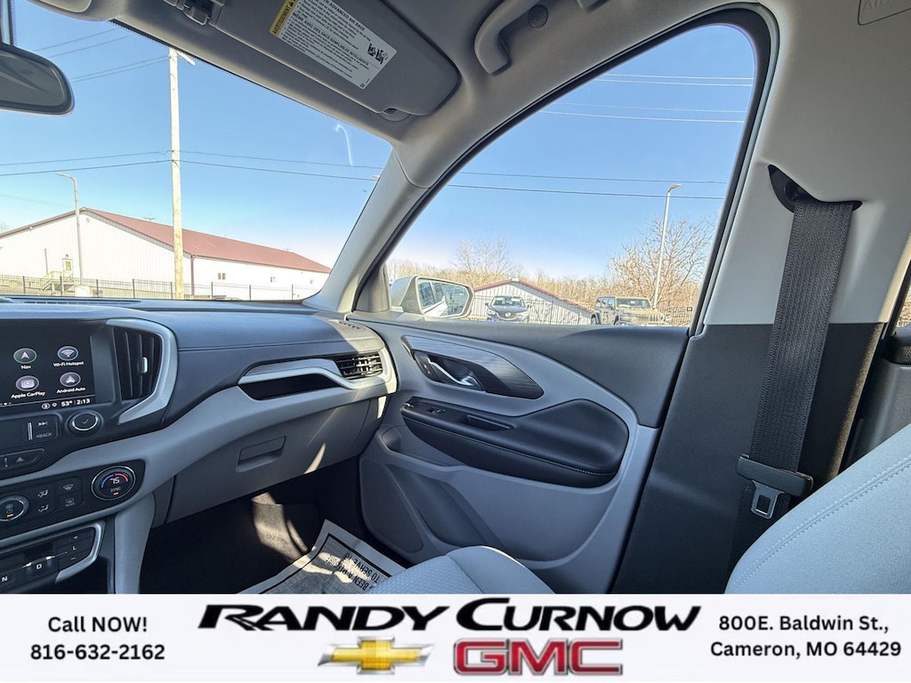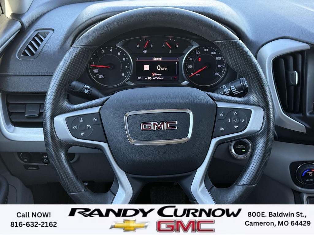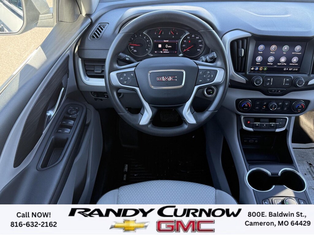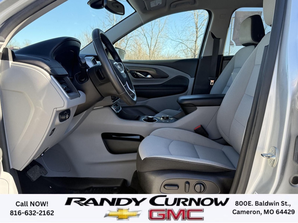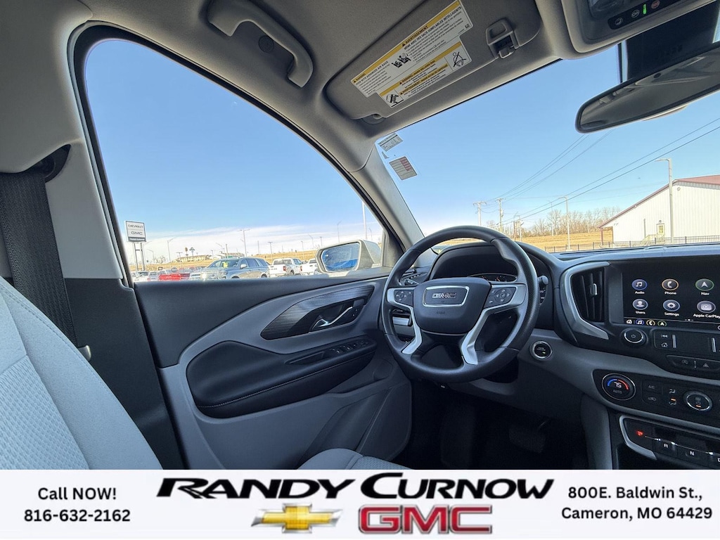 This 2022 GMC Terrain SLE, has a Quicksilver Metallic exterior with a Medium Ash Gray/Jet Black interior. Call us at 816-632-2162 and reference stock Number 7772A for further details. IMPORTANT PACKAGE INFORMATION: Driver Convenience Package ($1,375 value)8-Way Power Driver Seat AdjusterRemote StartDual-Zone Automatic Climate ControlDriver and Front Passenger Heated SeatsRoof-Mounted Luggage Rack Side RailsPreferred Equipment Group 3SACargo Package ($210 value)Retractable Cargo ShadeVertical Cargo NetInfotainment Package I ($795 value)GMC Infotainment Audio System with Navigation110-Volt Power Outlet4.2" Multi-Color Driver Information ScreenHD Rear Vision CameraGMC Pro Safety Plus ($695 value)Outside Heated Power-Adjustable MirrorsSafety Alert SeatAdaptive Cruise ControlRear Park AssistRear Cross-Traffic AlertLane Change Alert with Side Blind Zone Alert Safety and Security The vehicle is equipped with a system that senses, and then prepares, the vehicle and/or occupants, for an impending forward collision. The vehicle constantly monitors the roadway in front of the vehicle and identifies and tracks pedestrians on an interior display. If the system determines a likely impact, it will automatically take preventative steps to avoid hitting the pedestrian.Technology and Telematics Apple CarPlay/Android Auto smart device wireless mirroring Wireless Apple CarPlay/Wireless Android Auto smart device wireless mirroring Mobile devices can wirelessly connect to the internet through the vehicle's private mobile network. OTHER NOTABLE FEATURES AND OPTIONS YOU SHOULD KNOW ABOUT: EMISSIONS, CALIFORNIA STATE REQUIREMENTS, EMISSIONS OVERRIDE, FEDERAL, ENGINE, 1.5L TURBO DOHC 4-CYLINDER, SIDI, VVT, TRANSMISSION, 9-SPEED AUTOMATIC 9T45, ELECTRONICALLY-CONTROLLED WITH OVERDRIVE, AXLE, 3.47 FINAL DRIVE RATIO, WHEELS, 17" X 7" (43.2 CM X 17.8 CM) SILVER PAINTED ALUMINUM, TIRES, P225/65R17 ALL-SEASON BLACKWALL, QUICKSILVER METALLIC, SEATS, FRONT BUCKET, MEDIUM ASH GRAY/JET BLACK, PREMIUM CLOTH SEAT TRIM, AUDIO SYSTEM, 8" DIAGONAL GMC INFOTAINMENT SYSTEM WITH NAVIGATION, DRIVER CONVENIENCE PACKAGE, INFOTAINMENT PACKAGE I, GMC PRO SAFETY PLUS, LPO, CARGO PACKAGE, LUGGAGE RACK, SIDE RAILS, ROOF-MOUNTED, MIRRORS, OUTSIDE HEATED POWER-ADJUSTABLE, MANUAL-FOLDING WITH LED TURN SIGNAL INDICATORS, LICENSE PLATE FRONT MOUNTING PACKAGE, SEATS, HEATED DRIVER AND FRONT PASSENGER, SEAT, DRIVER 8-WAY POWER WITH 2-WAY POWER LUMBAR, SEAT, POWER DRIVER LUMBAR CONTROL, REMOTE START, ADAPTIVE CRUISE CONTROL, POWER OUTLET, 110-VOLT, LOCATED ON THE REAR OF CENTER CONSOLE, USB DATA PORTS, 2, TYPE-A, LOCATED WITHIN THE CENTER CONSOLE, USB DATA PORTS, 2, ONE TYPE-A AND ONE TYPE-C, AIR CONDITIONING, DUAL-ZONE AUTOMATIC CLIMATE CONTROL, LPO, CARGO NET, LPO, CARGO SHADE, RETRACTABLE, SAFETY ALERT SEAT, REAR CROSS TRAFFIC ALERT, LANE CHANGE ALERT WITH SIDE BLIND ZONE ALERT, REAR PARK ASSIST, HD REAR VISION CAMERA SERVING OUR FRIENDS AND NEIGHBORS IN CAMERON AND THE SURROUNDING AREA! At Randy Curnow Chevrolet GMC, we strive everyday to provide a car-buying and -servicing experience that's truly unparalleled. We offer incredibly low prices on our Chevrolet, GMC models for sale, while also giving back to the community that supports us. Hurry down to our Chevy dealership in Cameron, MO, now to see what we have in store for you. No matter if you're shopping for a new Chevy truck, GMC SUV or Buick luxury car, you'll find what you're looking for on our lot. Our nearby MO GMC dealership offers truly massive new, used and Certified Pre-Owned car inventories for you to browse. What's more, if you want to save on the new Buick SUV or Chevrolet model that you have your eye on, make sure to check out our new GMC lease specials and finance offers. We're always updating our Buick lease and Chevy financing incentives to include all your favorite vehicles, so stop by Randy Curnow Chevrolet GMC today! FINANCING OPTIONS: Take advantage of our attractive low-rate financing options. Our access to v