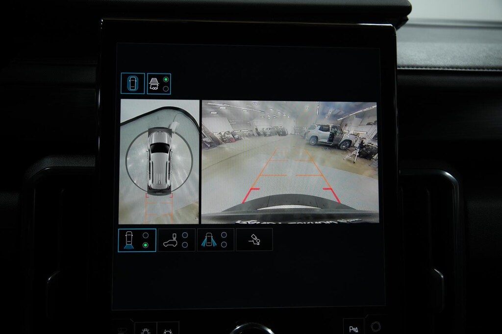 - The vehicle is equipped with a camera that displays an image of the area behind the vehicle on an interior display. The camera is equipped with its own washer.
