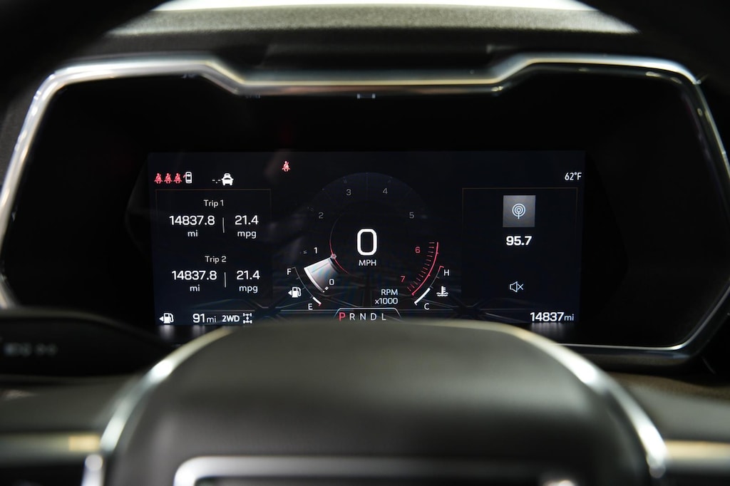 - Speedometer, tachometer, engine temperature, fuel level, mileage and trip displays