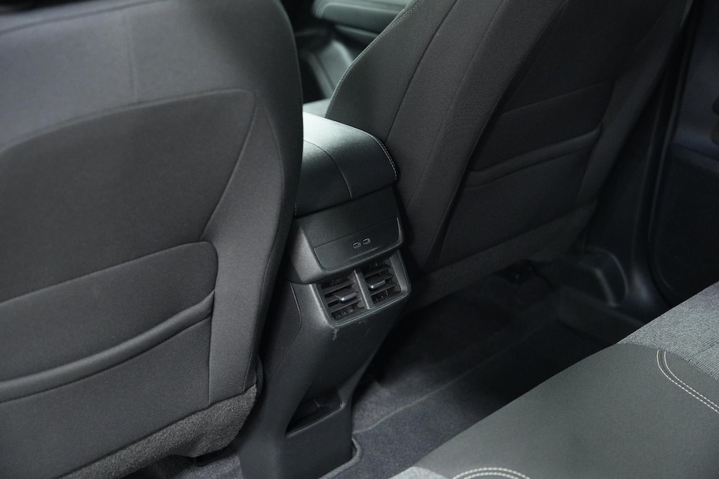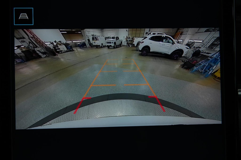 - The vehicle is equipped with a camera that displays an image of the area behind the vehicle on an interior display.