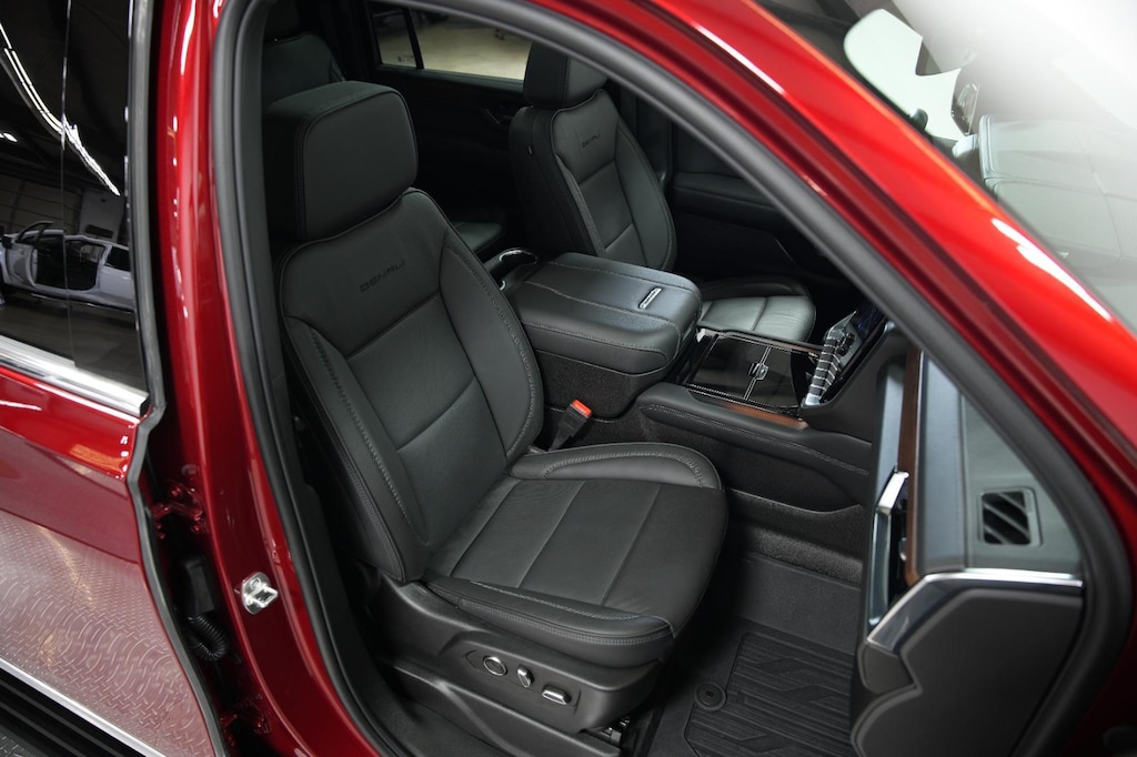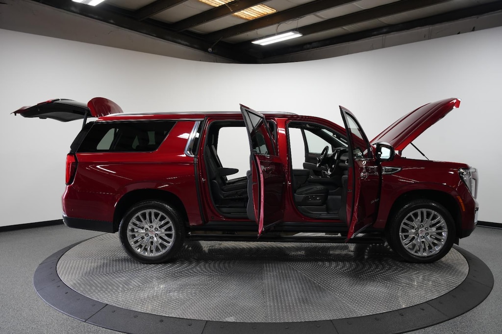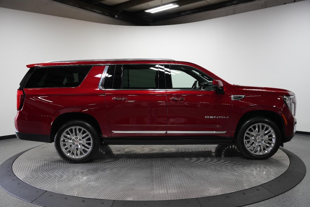 2025 GMC Yukon XL Denali, has a Volcanic Red Tintcoat exterior with a Jet Black interior. Call us at 913-601-5486 and reference stock Number 111934A for further details.