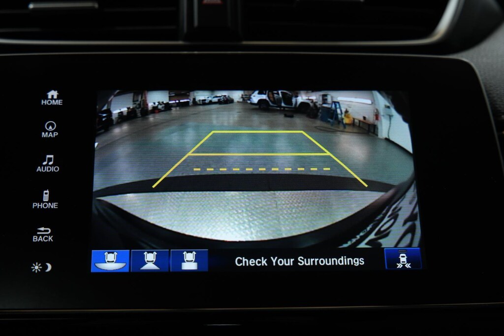 - The vehicle is equipped with a camera that displays an image of the area behind the vehicle on an interior display.