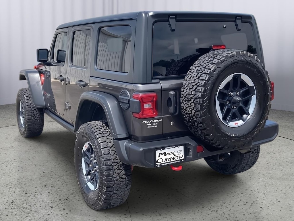 This 2019 Jeep Wrangler Unlimited Rubicon, has a Granite Crystal Metallic Clearcoat exterior with a Black interior. Call us at 660-240-8249 and reference stock Number 200934 for further details. IMPORTANT PACKAGE INFORMATION: Cold Weather Group ($695 value)Heated Front SeatsHeated Steering WheelQuick Order Package 23R8.4" Radio and Premium Audio Group ($1,595 value)Rear View Auto Dim MirrorGPS NavigationAlpine Premium Audio SystemHD Radio8.4" Touchscreen Display1-Year SiriusXM Guardian TrialSiriusXM Travel LinkEmergency/assistance CallSiriusXM Traffic Plus4G LTE Wi-Fi Hot SpotUconnect 4C Navigation Radio with 8.4" DisplayFor Details, Visit DriveUconnect.ca5-Year SiriusXM Traffic Service5-Year SiriusXM Travel Link ServiceQuick Order Package 23R8.4" Radio and Premium Audio Group ($1,595 value)Rear View Auto Dim MirrorGPS NavigationAlpine Premium Audio SystemHD Radio8.4" Touchscreen Display1-Year SiriusXM Guardian TrialSiriusXM Travel LinkEmergency/assistance CallSiriusXM Traffic Plus4G LTE Wi-Fi Hot SpotUconnect 4C Navigation Radio with 8.4" DisplayFor Details, Visit DriveUconnect.ca5-Year SiriusXM Traffic Service5-Year SiriusXM Travel Link ServiceLED Lighting Group ($995 value)LED TaillampsFront LED Fog LampsLED Reflector HeadlampsDaytime Running Lamps LED Accents Comfort The seating surfaces are covered in premium cloth. The seat provides a variety of adjustments to enhance seating comfort.Technology and Telematics Without the need for a manufacturer specific app to be installed on the smart device, the vehicle infotainment system can access and control functions of a smart device physically plugged-into the vehicle. Otherwise known as Bluetooth, this technology allows electronic devices to integrate with the vehicle systems without the need for a physical connection between them. A Universal Serial Bus (USB) allows connection, data transfer, and/or power supply between the vehicle and electronic devices. OTHER NOTABLE FEATURES AND OPTIONS!: WHY BUY FROM MAX CURNOW CHEVROLET GMC? Just a little about us! We strive to serve our friends, family, neighbors, and our surrounding communities. We are committed to delivering the best customer service from our New and Used Sales, Finance, Service and Collision Departments. No matter if you are shopping for a Chevrolet, GMC, New or Used, you will find that we price our vehicles very competitively. Max Curnow Chevrolet GMC is your "one stop shop dealership!" Come in today and become a part of the Max Curnow Chevrolet family! In order to make it easier for you to shop vehicles at our store, and to get you the information that you need in a timely manner, feel free to call our general manager, Michael Ball. You can call or text him at any time at 660-973-0537. FINANCING OPTIONS: Take advantage of our attractive low-rate financing options. Our access to various Credit Unions and National Banks can provide financing for most credit levels. We can tailor a finance package to fit your needs. To get started, complete our secure online credit application.