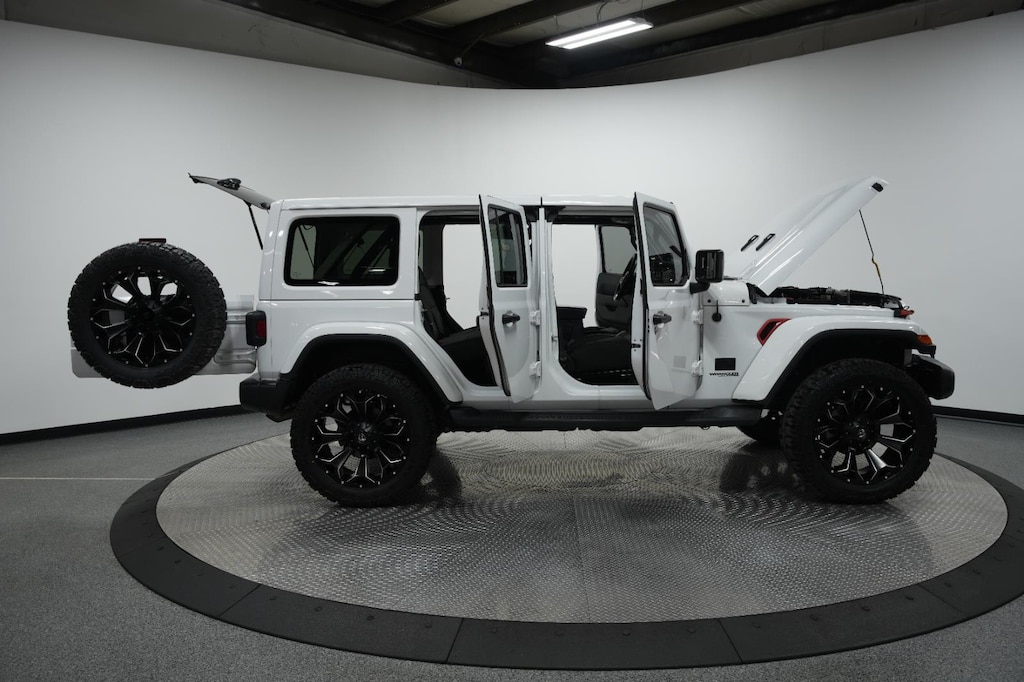 2019 Jeep Wrangler Unlimited Sahara, has a Bright White exterior with a Black interior. Call us at 913-601-5486 and reference stock Number 213933A for further details.